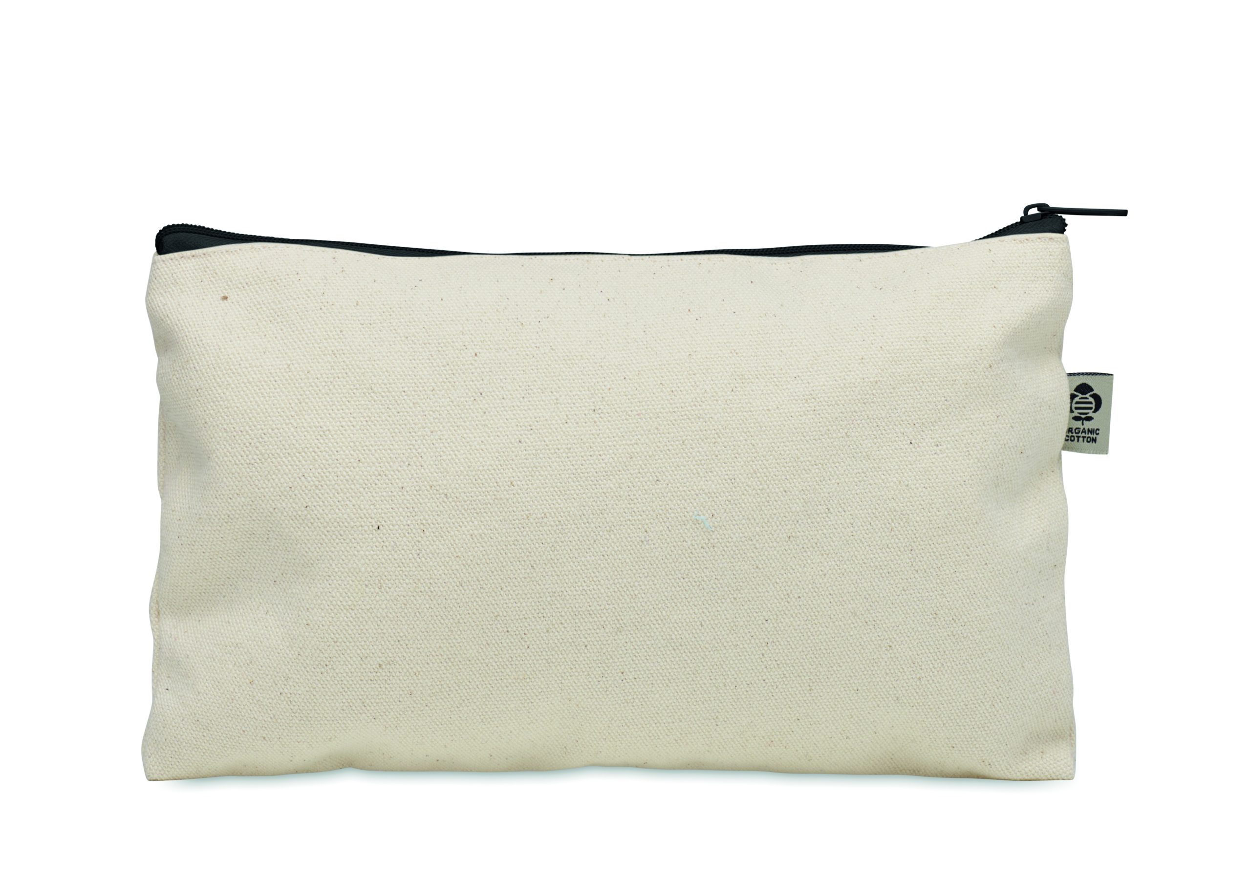 Cosmetic bag in organic cotton with coloured zipper. 340 gr/m².