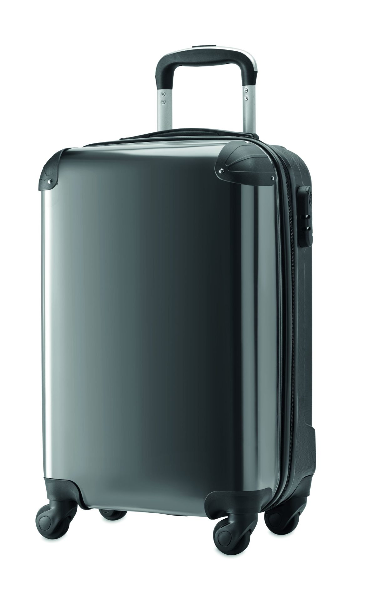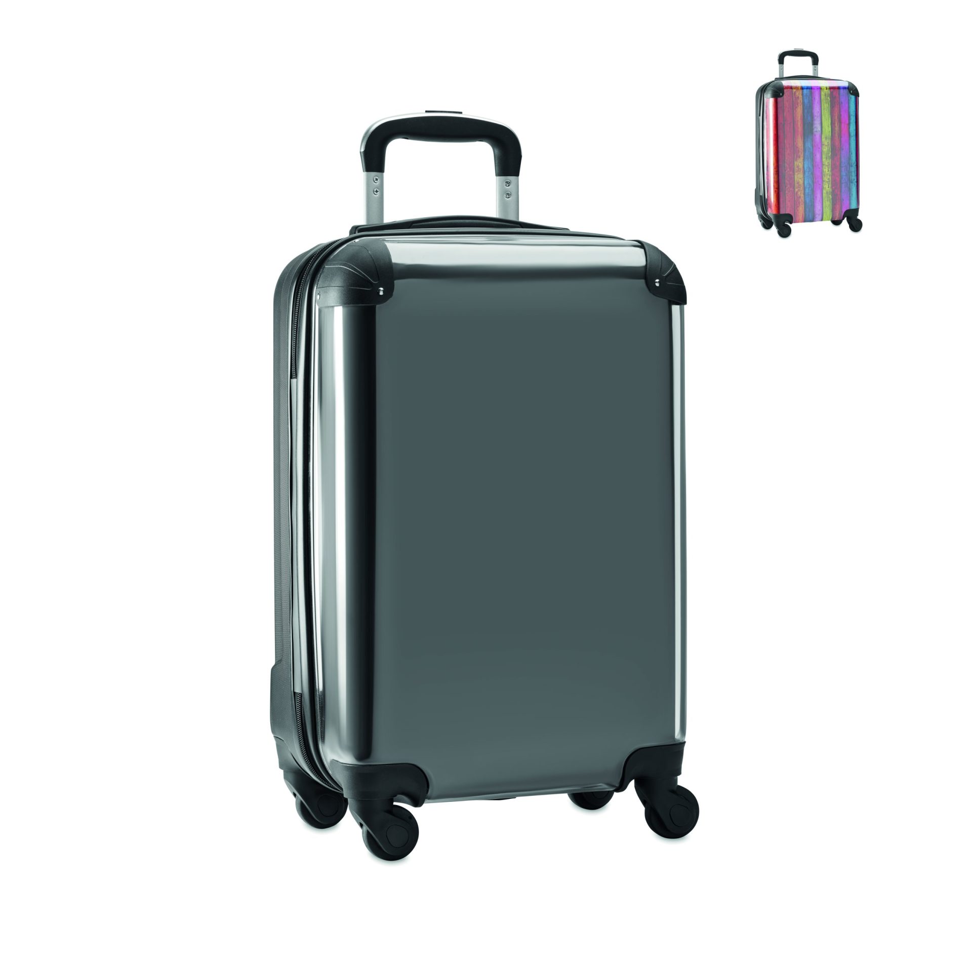 Trolley in PC and ABS with Photo inlay. It has an upper zipped compartment and bottom compartment with ribbons. Including a combination lock and double tube frame.