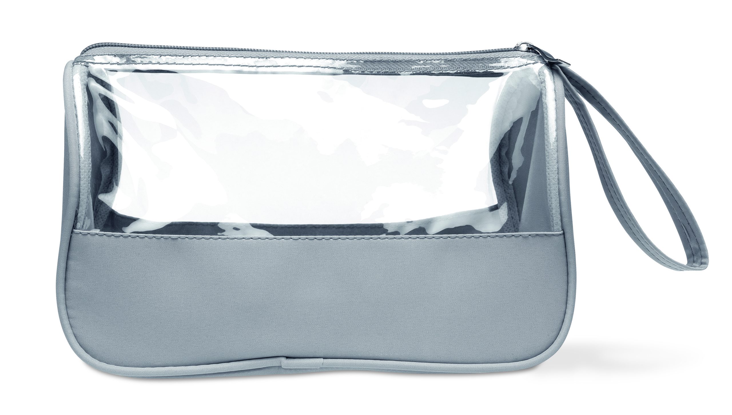 Cosmetic bag in microfiber and PVC 6 Phthalate free, with wrist handle.