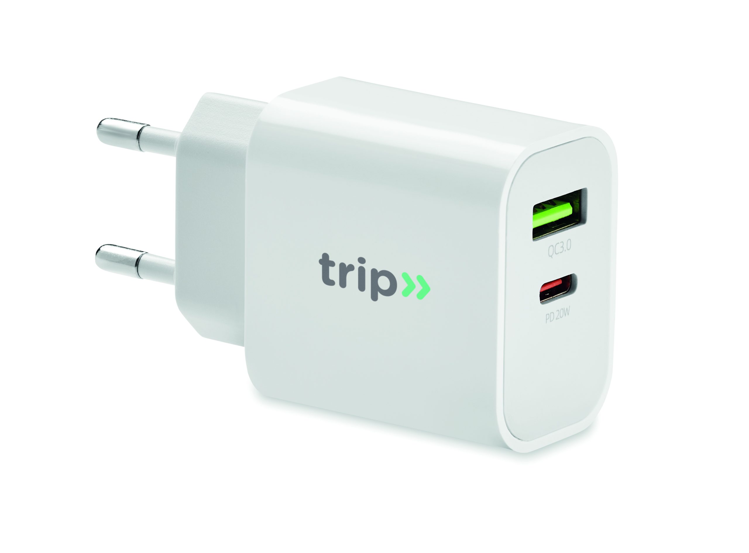 EU 2-pole wall adapter/charger. Supports quick charging technology (18W). 2 ports Type A and 1 Type C. Supports Quick Charge 3.0/Power Delivery technology. Not suitable for UK use.