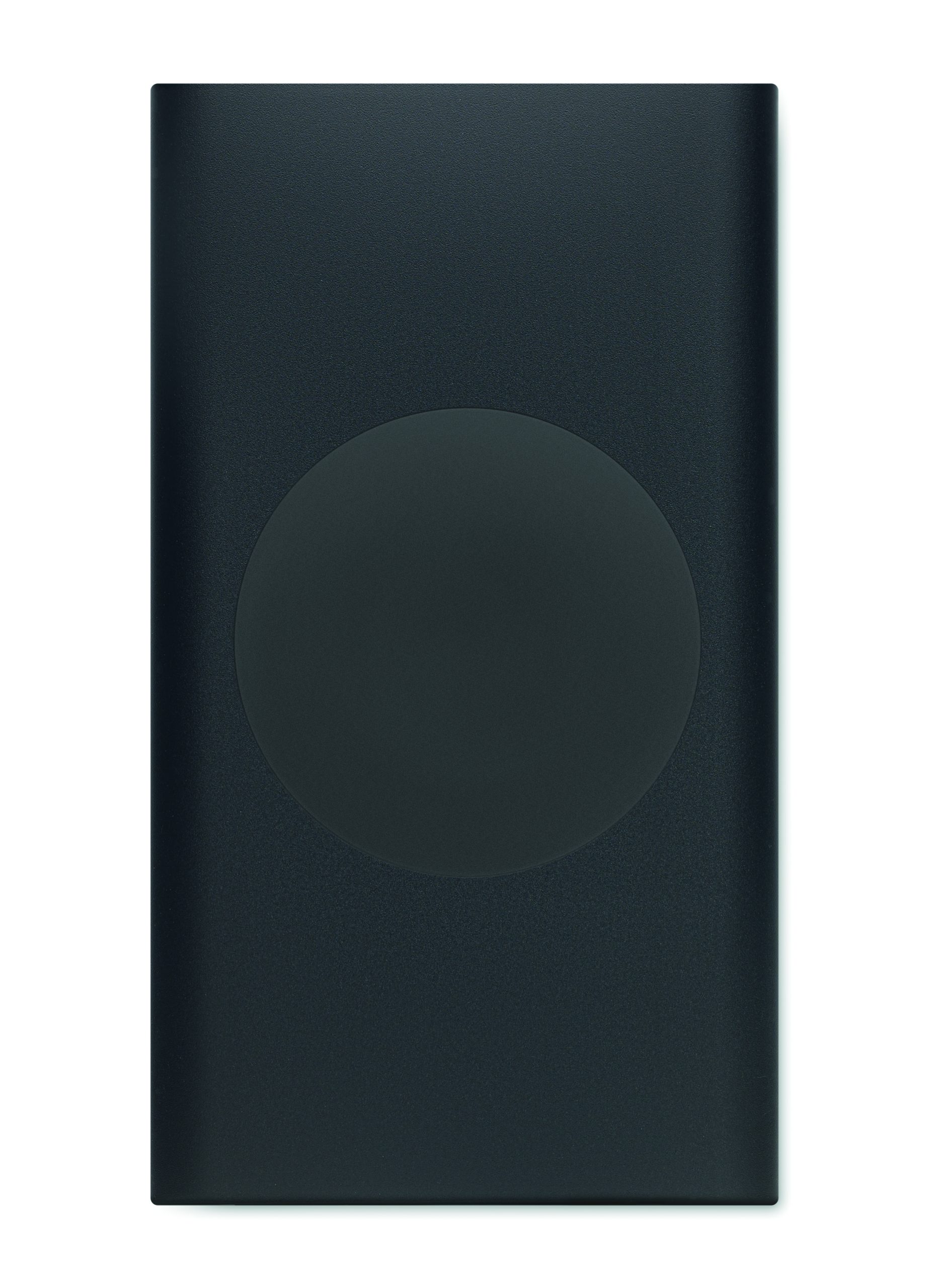 Wireless powerbank. 5000 mAh. Recycled aluminium and ABS (GRS). PD 18W. Outputs: USB-C 20W and USB-A up to 18W. Wireless charging up to 15W. Input: USB-C 18W. USB-C to USB-C cable (2A) with USB-A adapter included.
