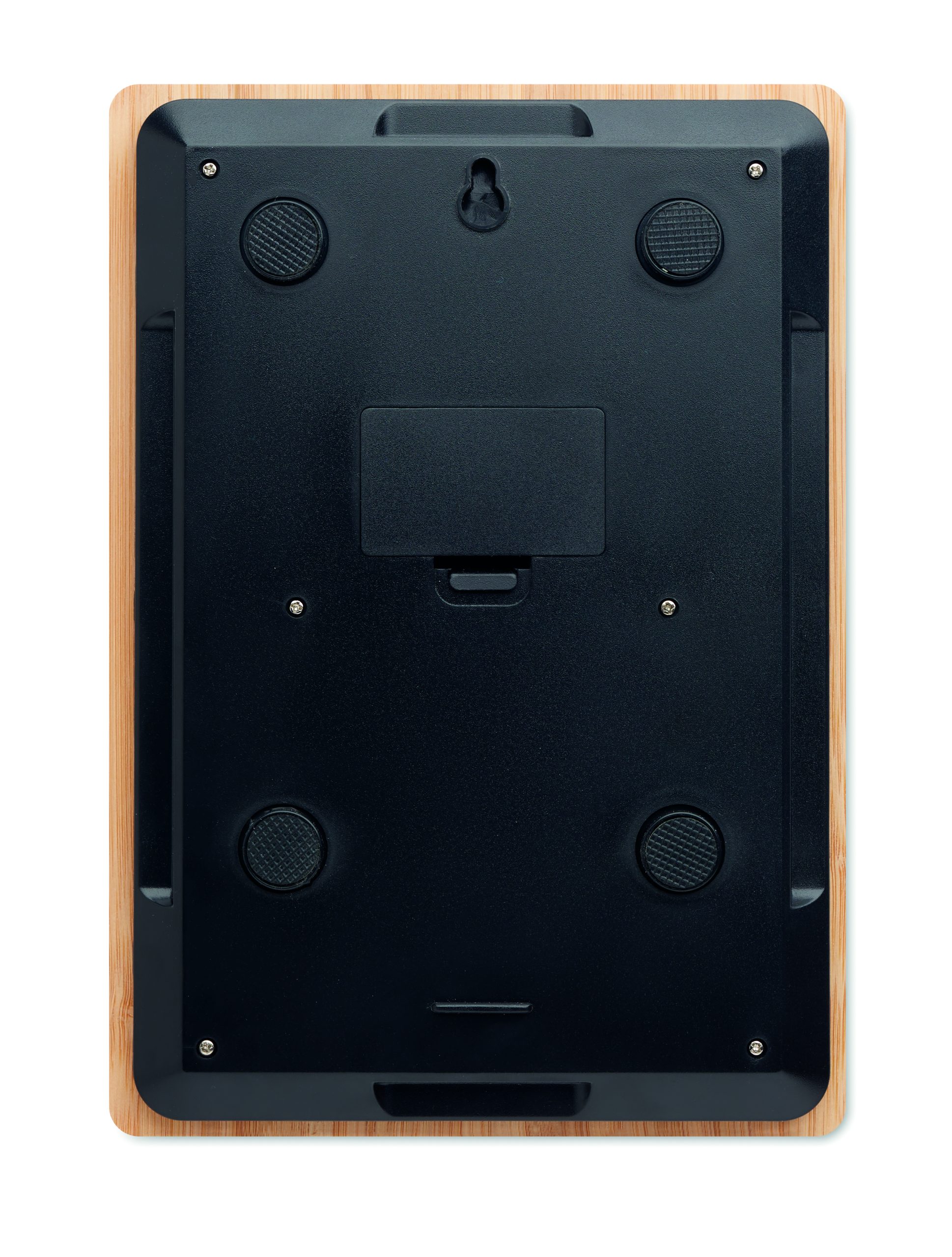 Digital kitchen scale made from bamboo. Perfect for measuring ingredients and food by weight in the kitchen when you are baking a cake or cooking deliscious meals. The scale has a maximum capacity of 5kg. Excludes 2 AAA batteries. Bamboo is a natural product, there may be slight variations in colour and size per item, which can affect the final decoration outcome. FSC®-certified | FSC 100%, N5.7, FSC-C213206