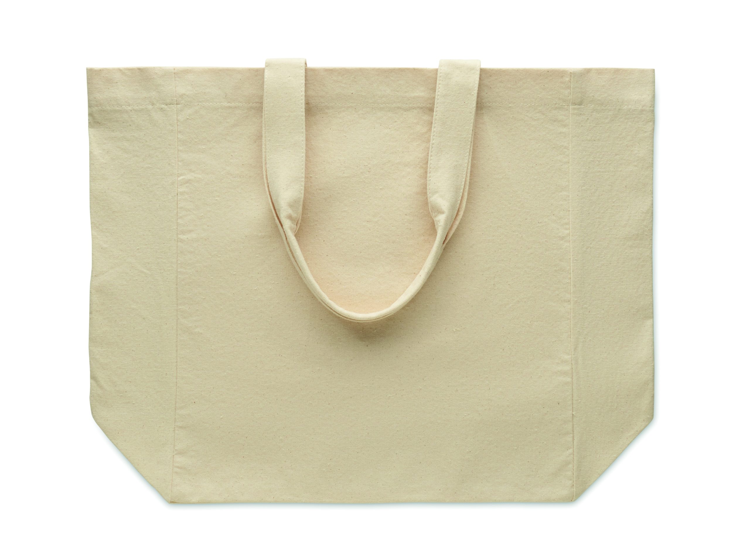 Cotton shopping bag with short handles and gusset. 220 gr/m².