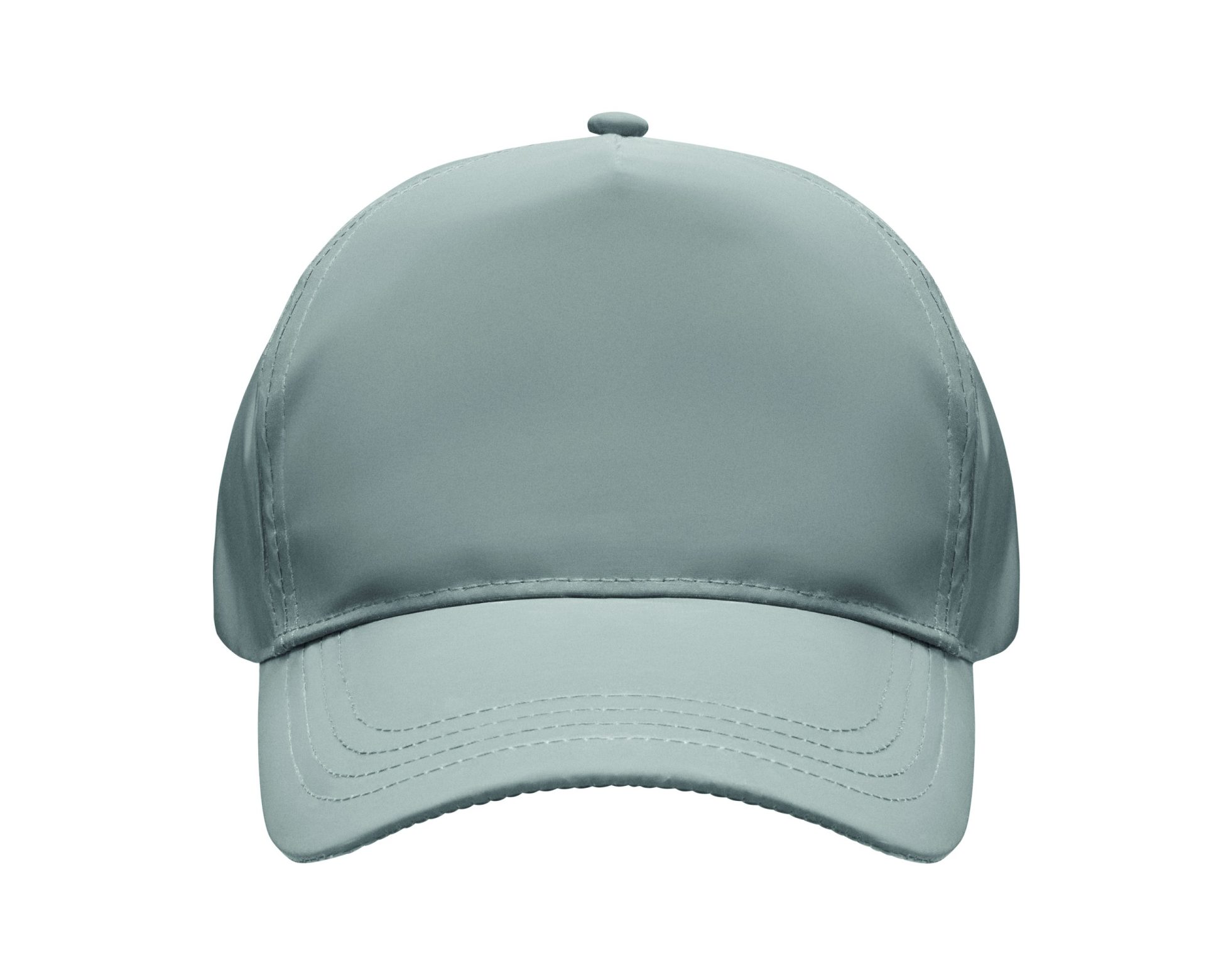5 panel baseball cap in high reflective 190T polyester. 4 stitched eyelets with hook and loop closure. Size 7 1/4.