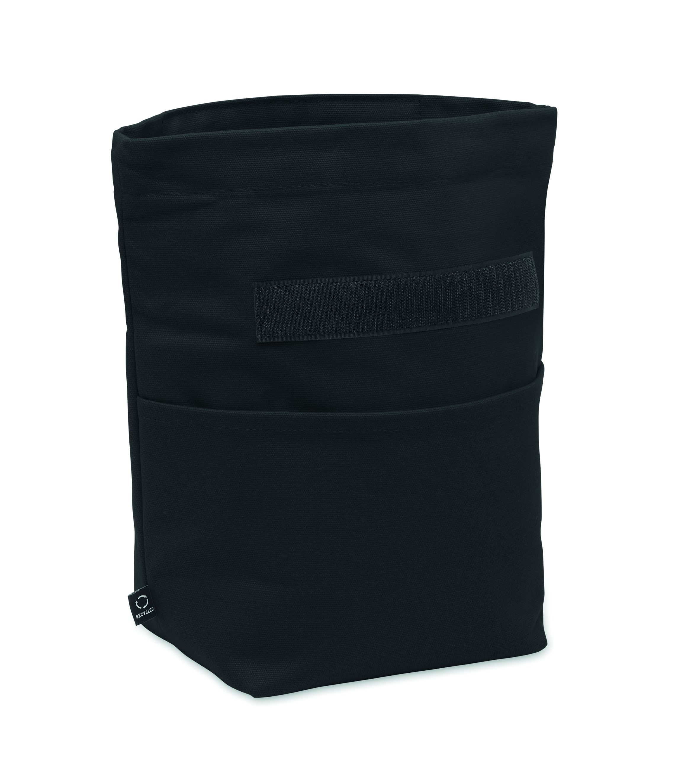 Recycled cotton (70% recycled cotton, 30% recycled polyester) insulated lunch cooler bag with rolltop hook and loop closure. Insulation: 3mm PE foam with 12C PEVA.