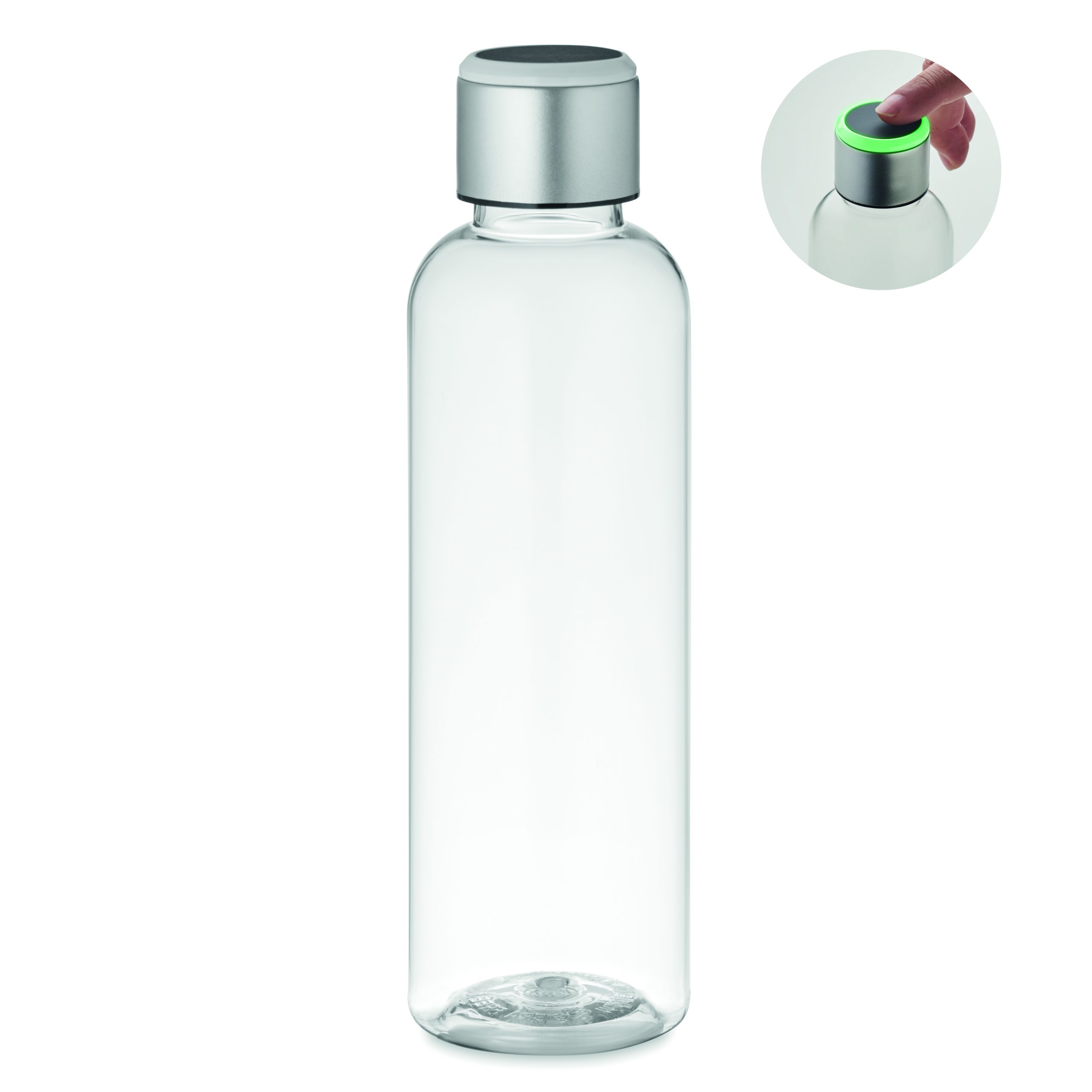 Tritan™ steel bottle with hydration reminder. Sensor light glows every hour reminding you when it is time to drink. Including 1 CR2032 battery. Capacity: 500 ml.
