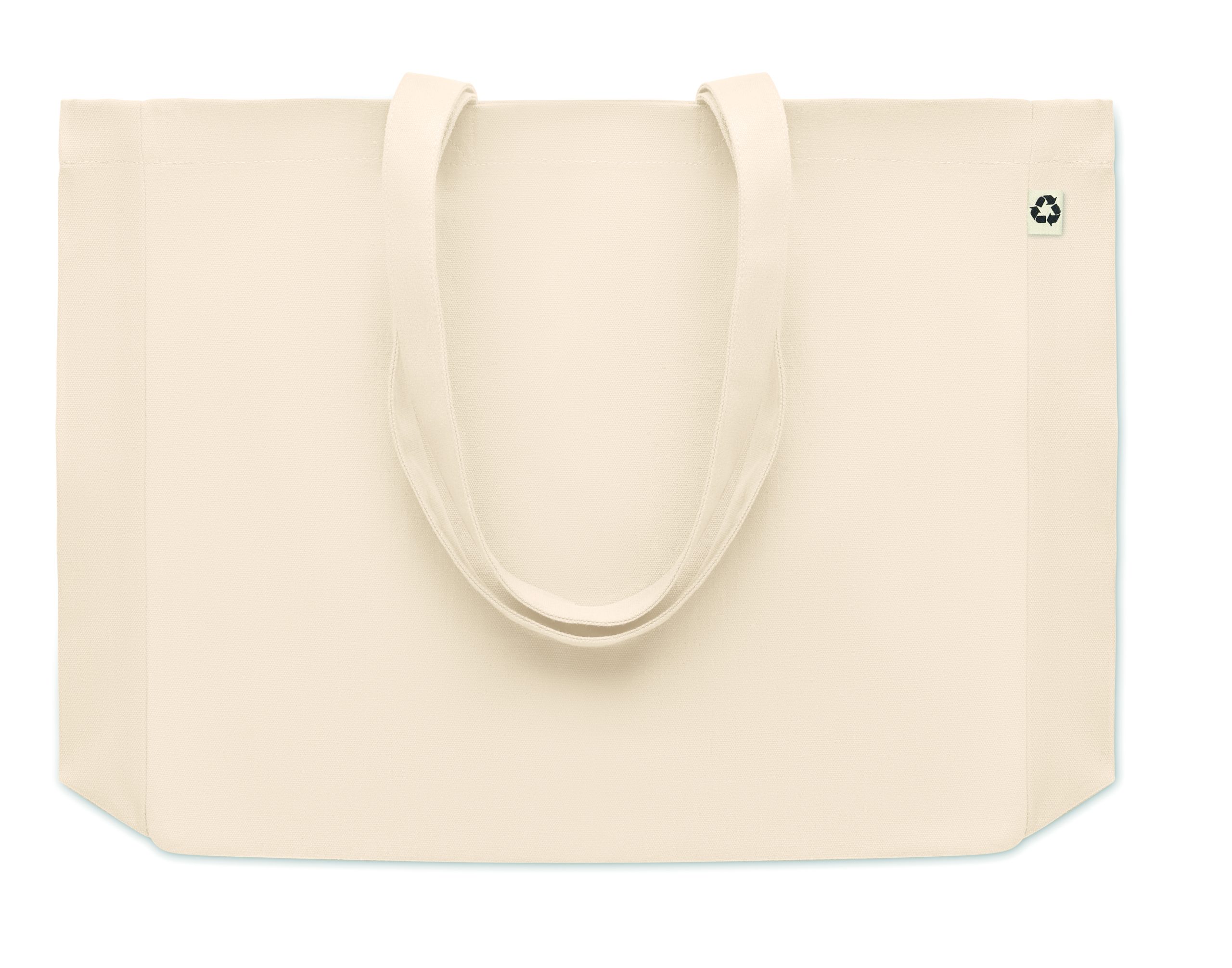 Recycled canvas shopping bag or beach bag, 50% cotton and 50% recycled cotton with long handles and gusset. 280 gr/m².