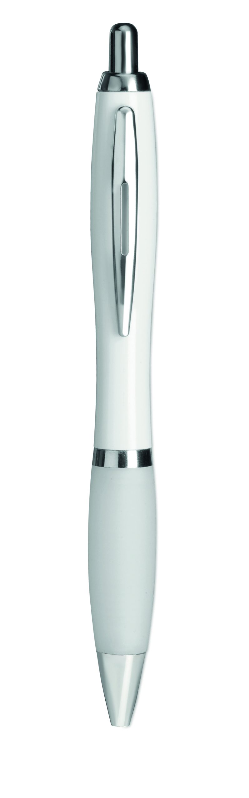 Push button ball pen in recycled ABS with soft grip. Blue ink.