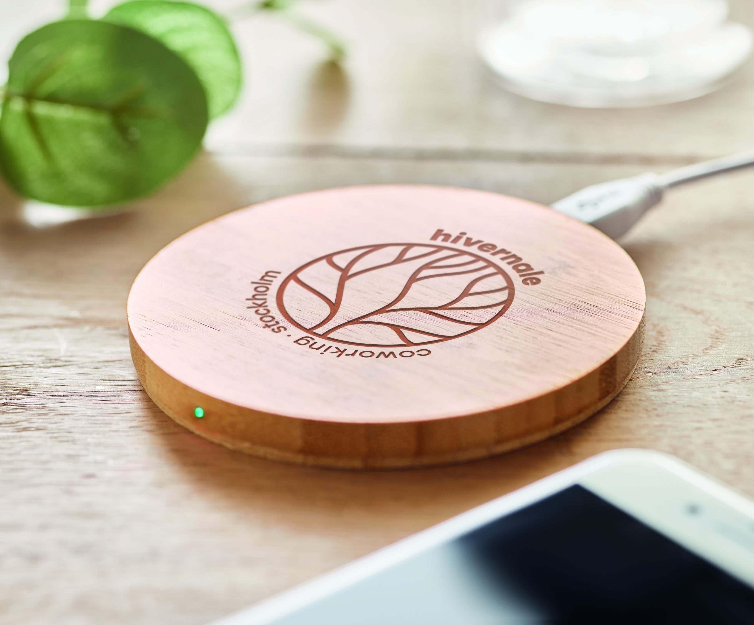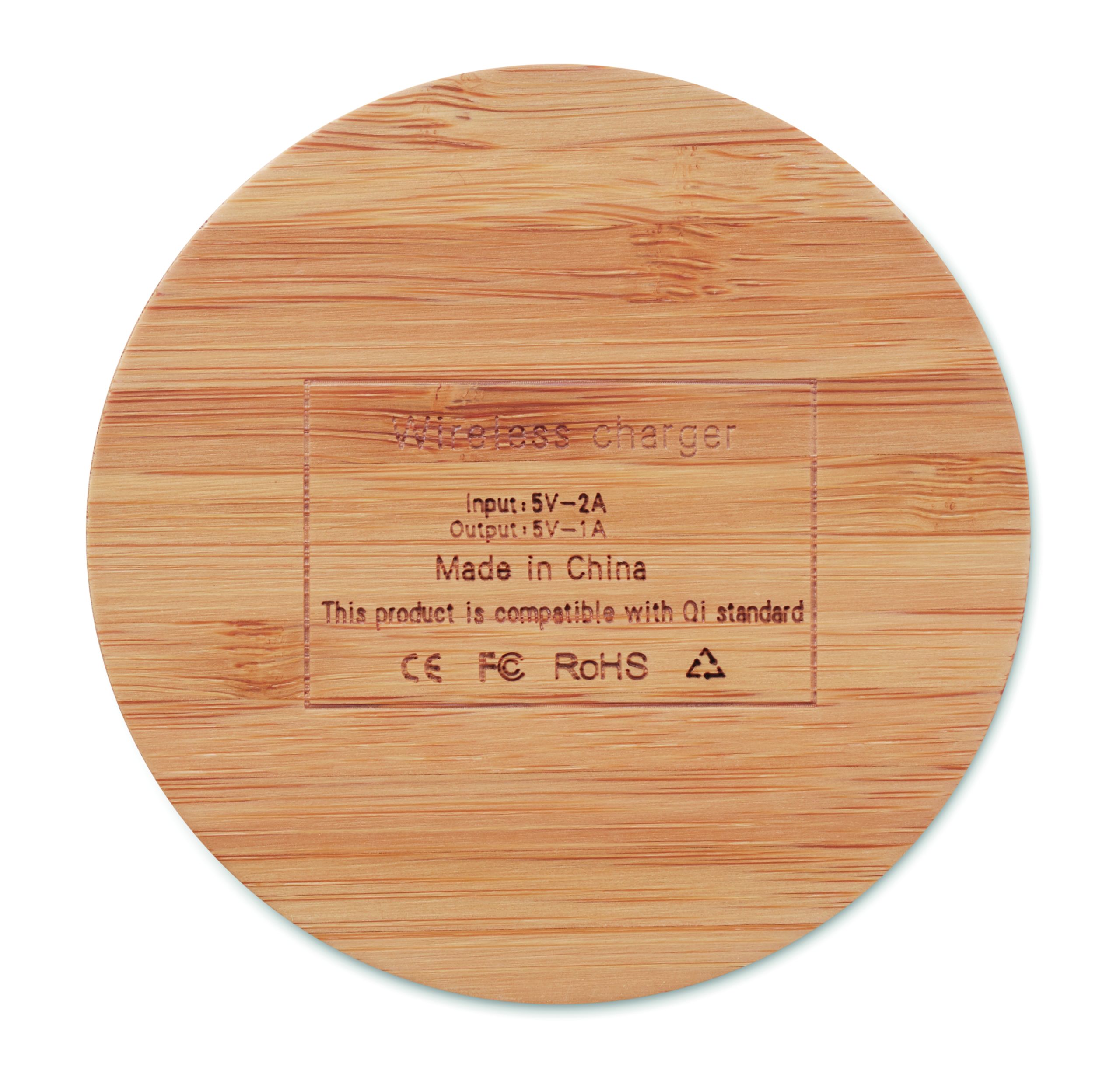 Wireless charger in bamboo. Connect device to your computer, place smartphone on it and allow it tocharge. Blue light lit when charging. Output: DC5V/1A (5W). Bamboo is a natural product, there may be slight variations in colour and size per item, which ca
