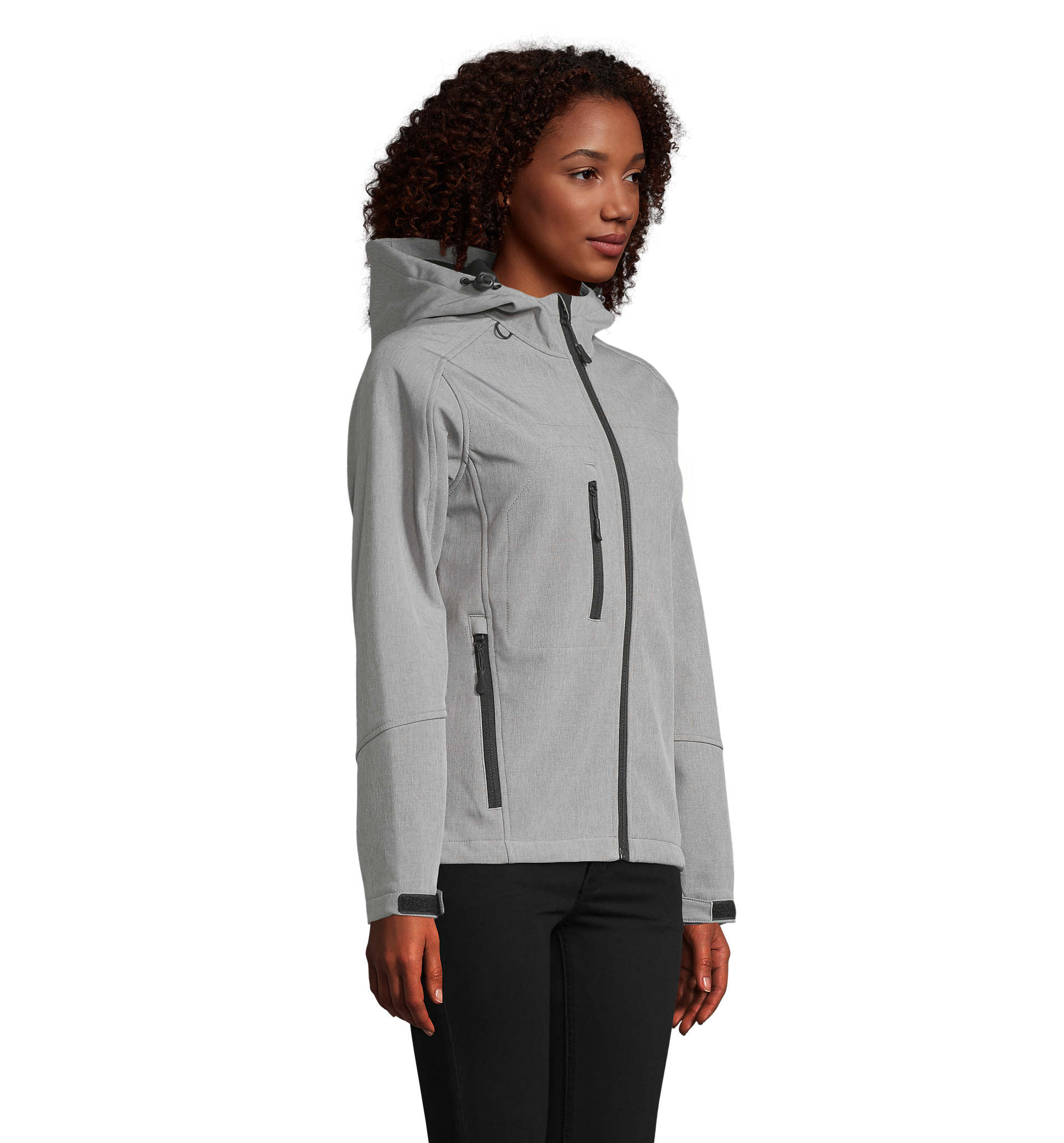 SOL’S REPLAY WOMEN, women’s hooded softshell, 94% polyester – 6% elastane, fleece lining: 100% polyester, 3 layers, 8000 mm waterproof and breathable membrane softshell 340, 2 zipped side pockets and 1 zipped chest pocket, adjustable waist drawstring, adjustable cuffs with self-gripping fastener, hood with drawstring. About sizes matching, please refer to the size chart in the product documentation section.