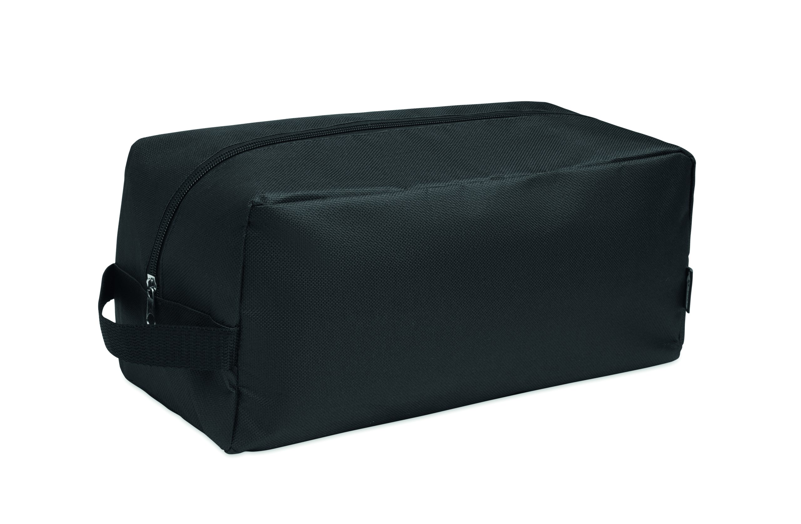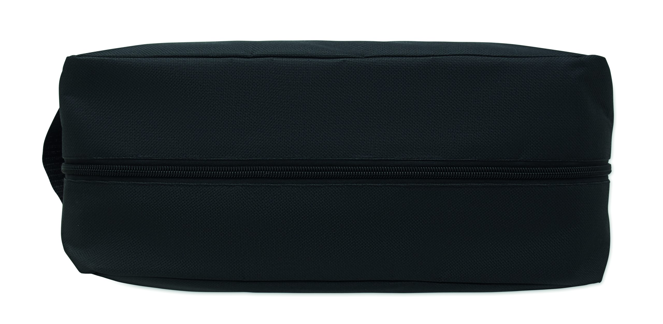 Shoe bag in 600D RPET polyester with side handle and zipper.