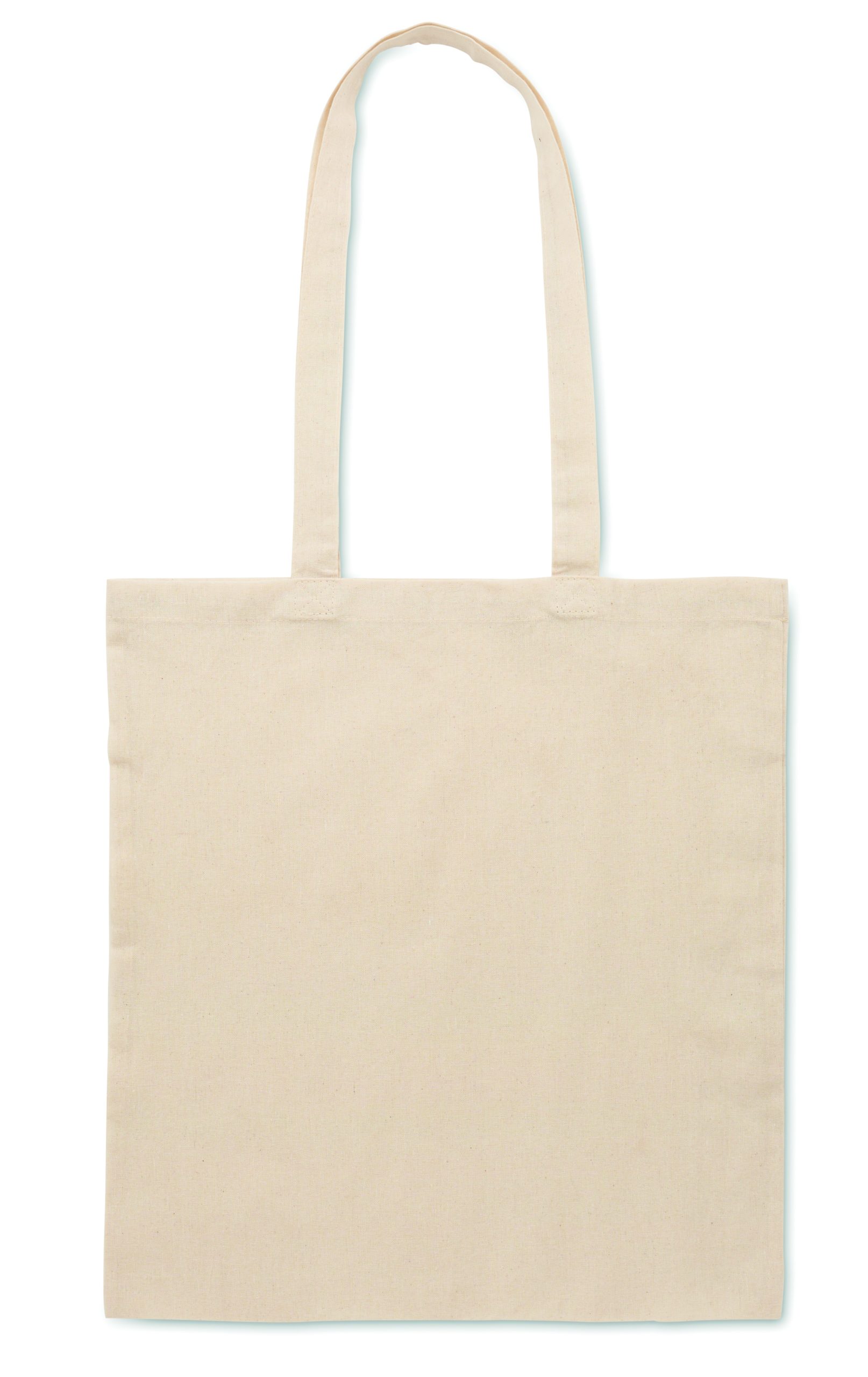 Polycotton (70% cotton and 30% polyester) shopping bag with long handles. 130 gr/m².