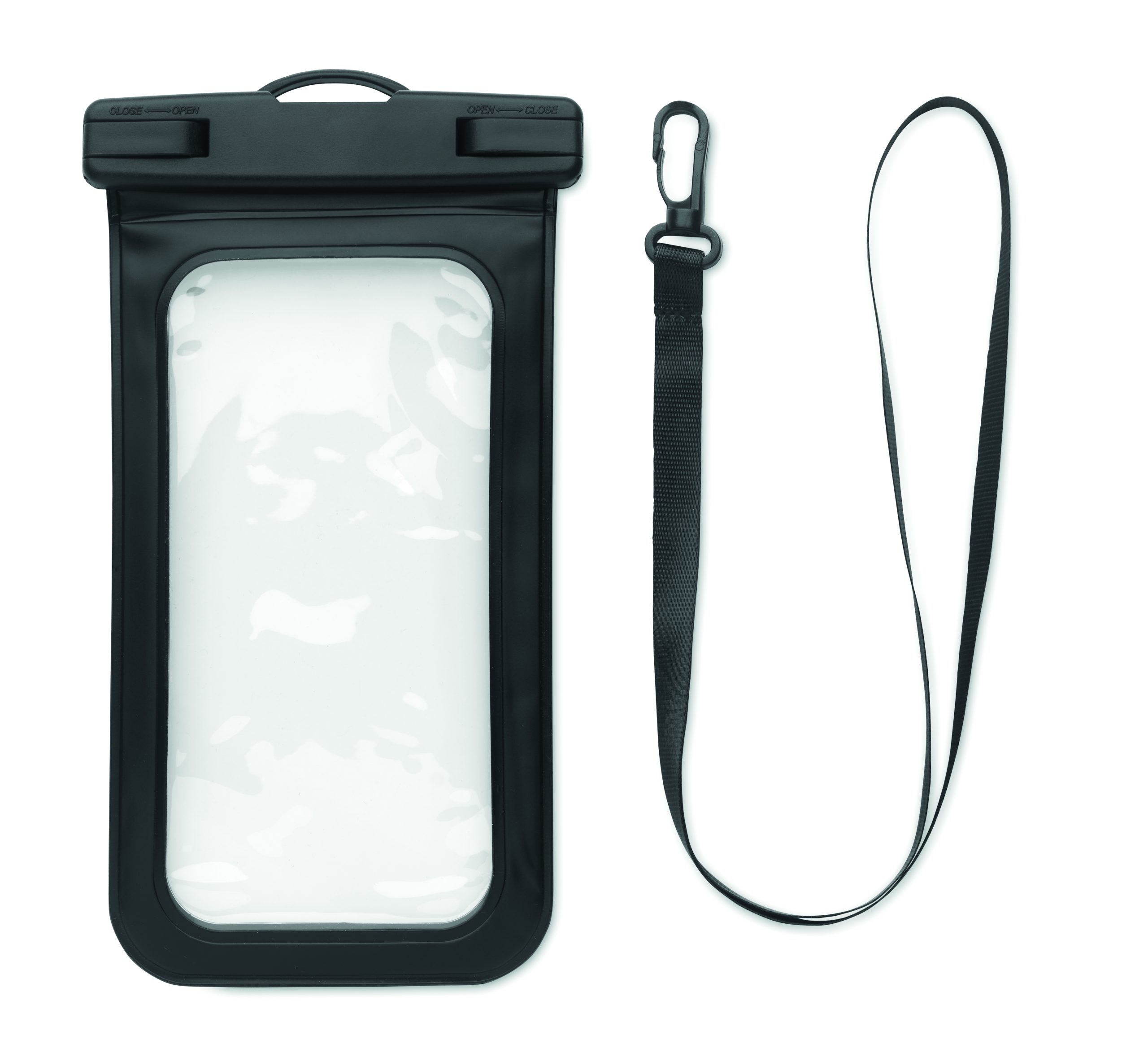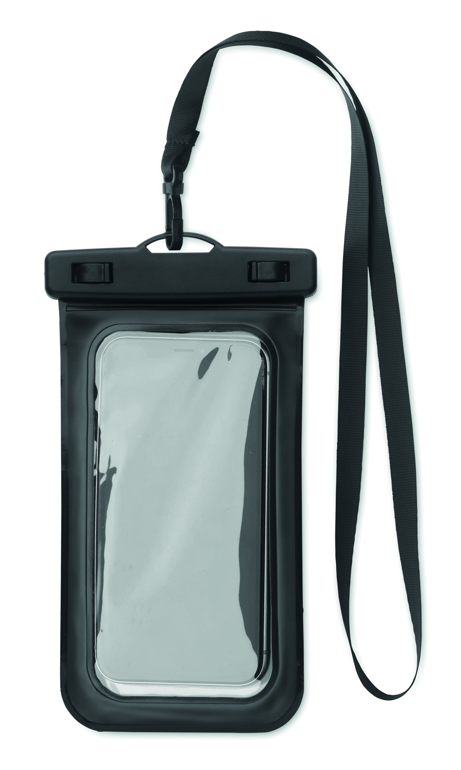 Waterproof phone pouch with adjustable and detachable lanyard. Waterproof rating: IPX 8. Fits for 6,7 inch size.