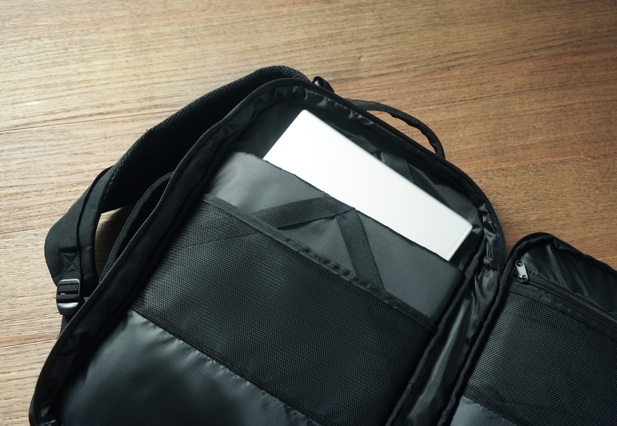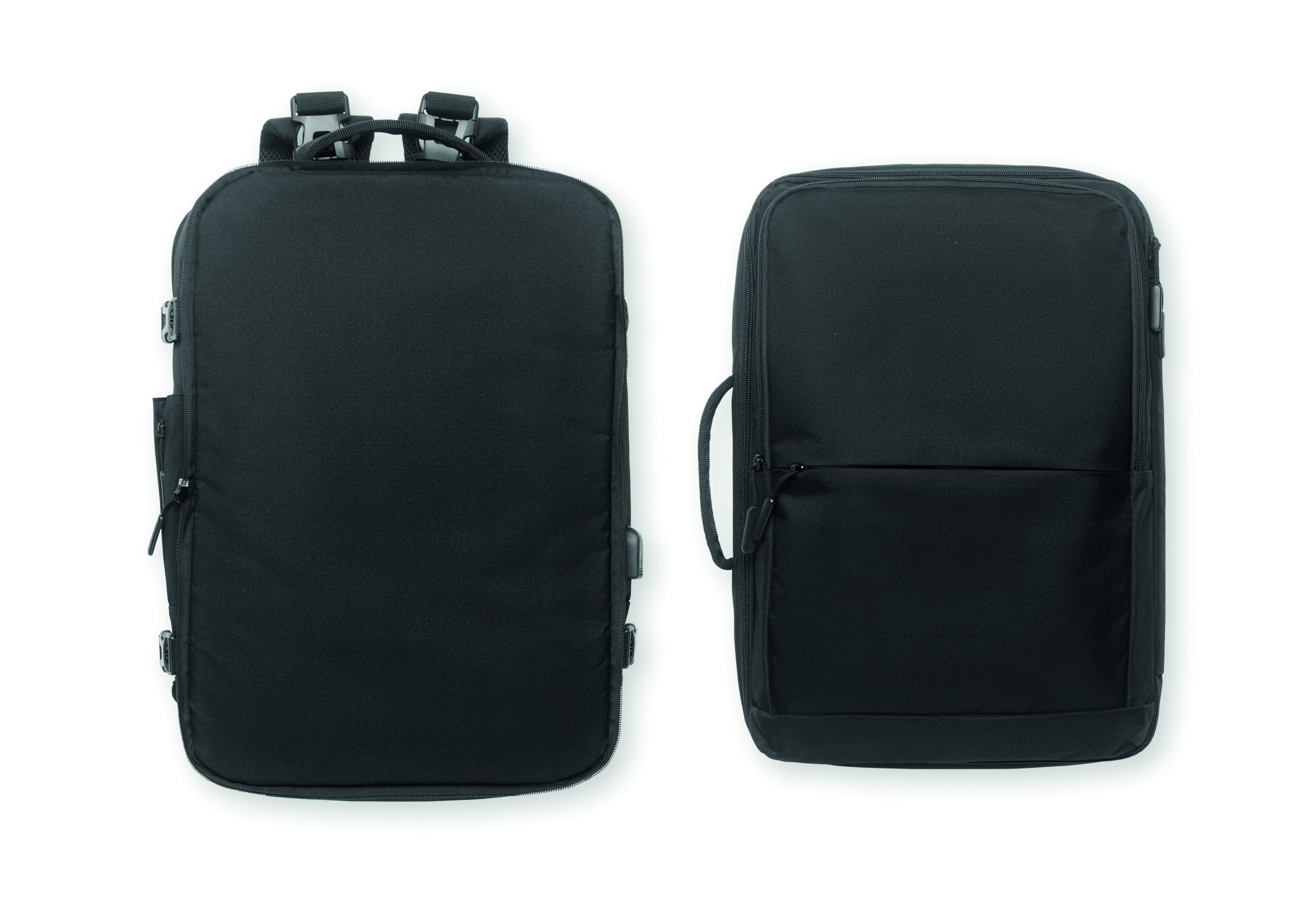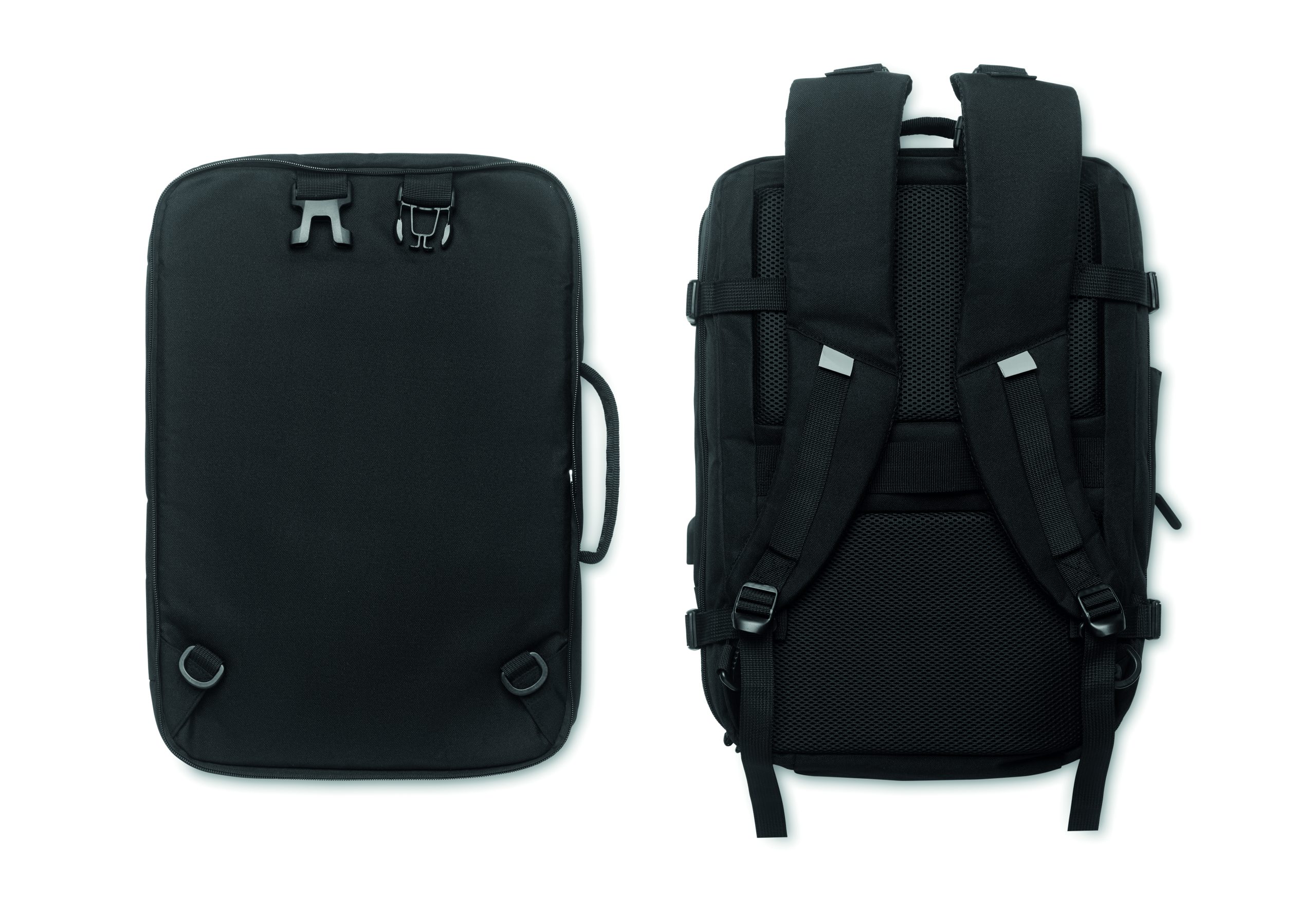 Travel Tech backpack in 600D RPET polyester. Modular / including several compartments.