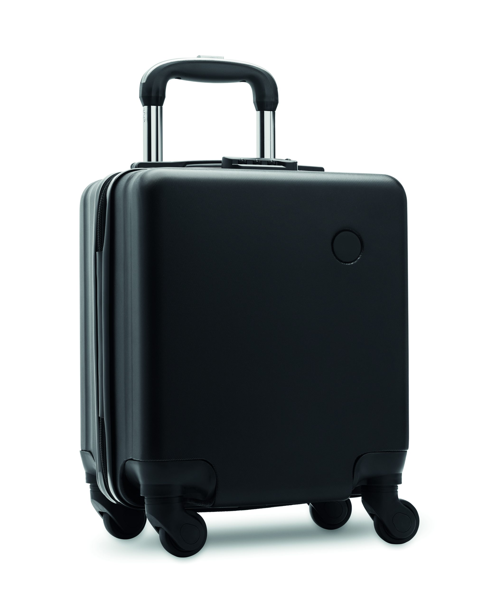 14 inch underseat luggage trolley with 4 wheels in ABS. It has an inside zippered pocket. Including a combination lock and double tube frame.