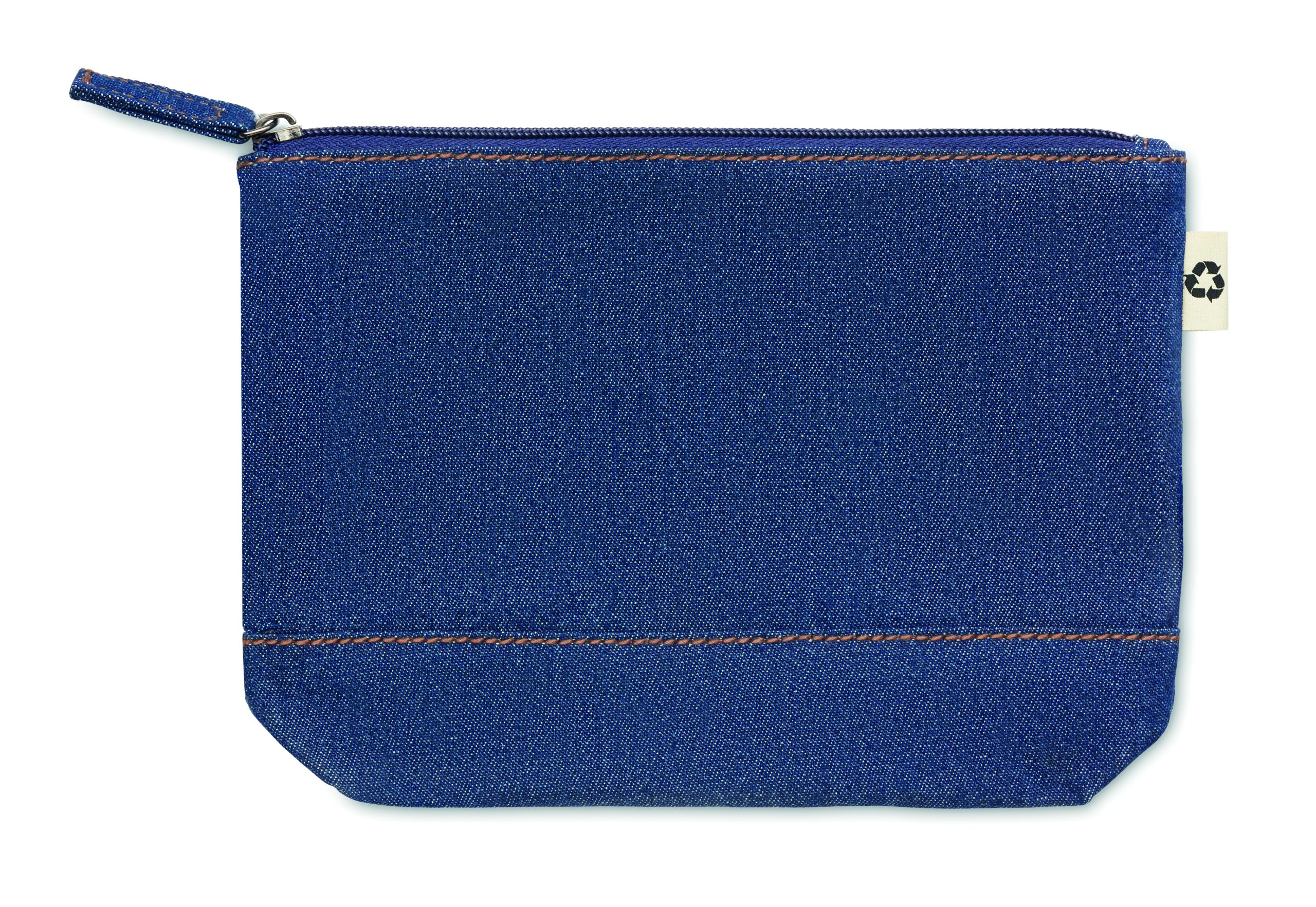 50% Recycled cotton dye denim and 50% cotton cosmetic pouch with zipper. 250 gr/m².