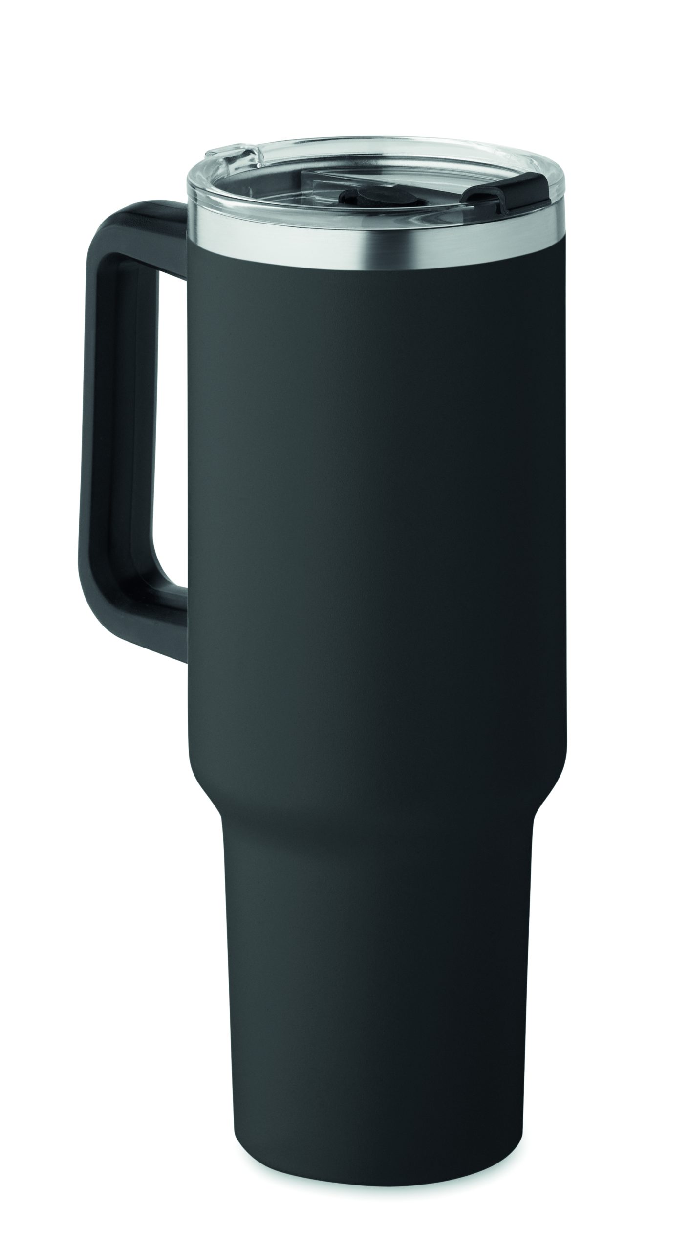 Double wall vacuum insulated recycled stainless steel tumbler (90% recycled stainless and 10% stainless steel) with straw lid including PE straw. Capacity 1200 ml.