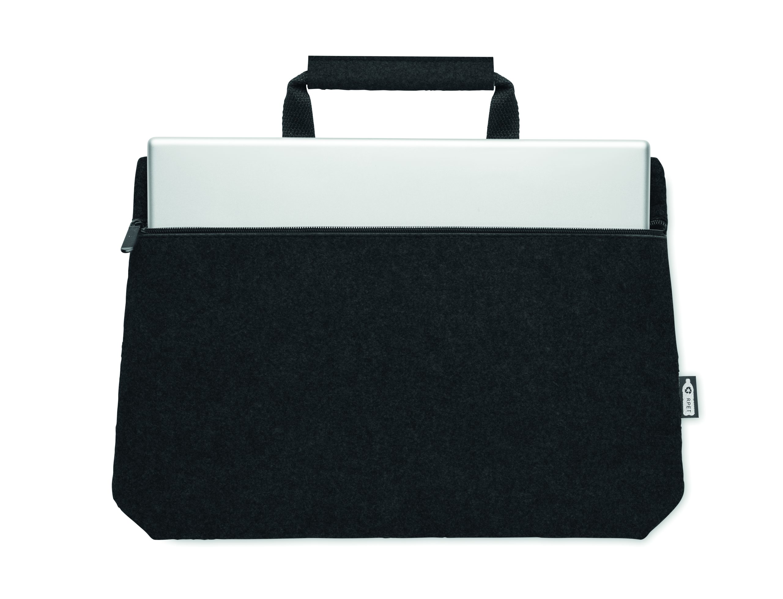 RPET felt 15 inch zippered laptop bag with zippered main compartment and inner pocket.