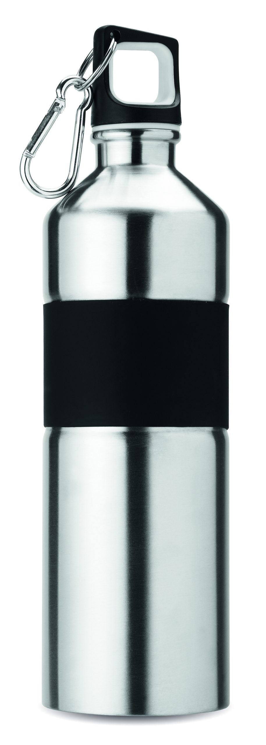 Single wall bicolour stainless steel bottle with rubber grip and carabiner hook. Capacity: 750 ml. The carabiner is not for climbing (non professional use). Leak free. As this is a single walled bottle, heat transfer can still occur.