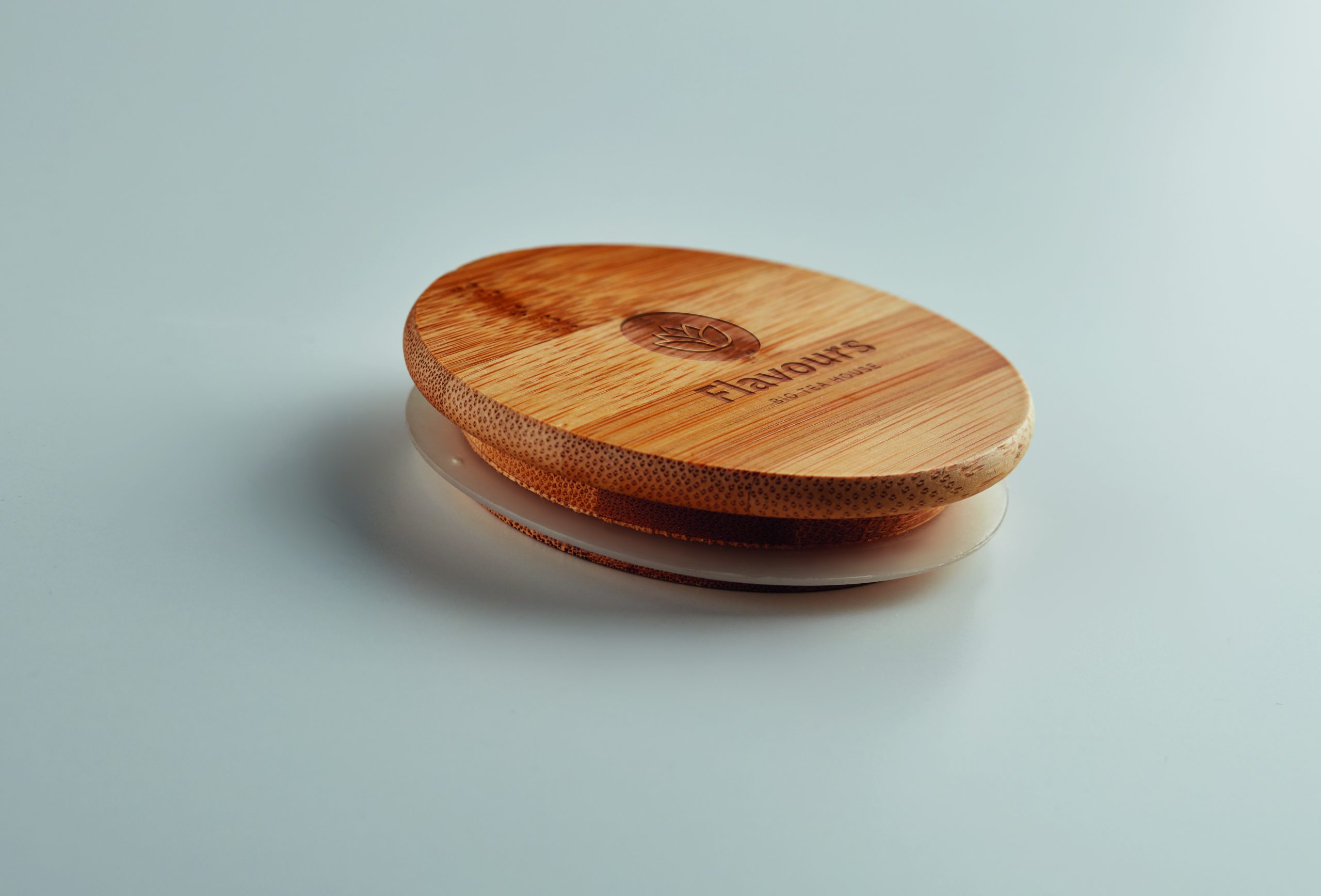 Double wall high borosilicate glass with bamboo lid with silicone ring. Capacity 450 ml. Bamboo is a natural product, there may be slight variations in colour and size per item, which can affect the final decoration outcome.