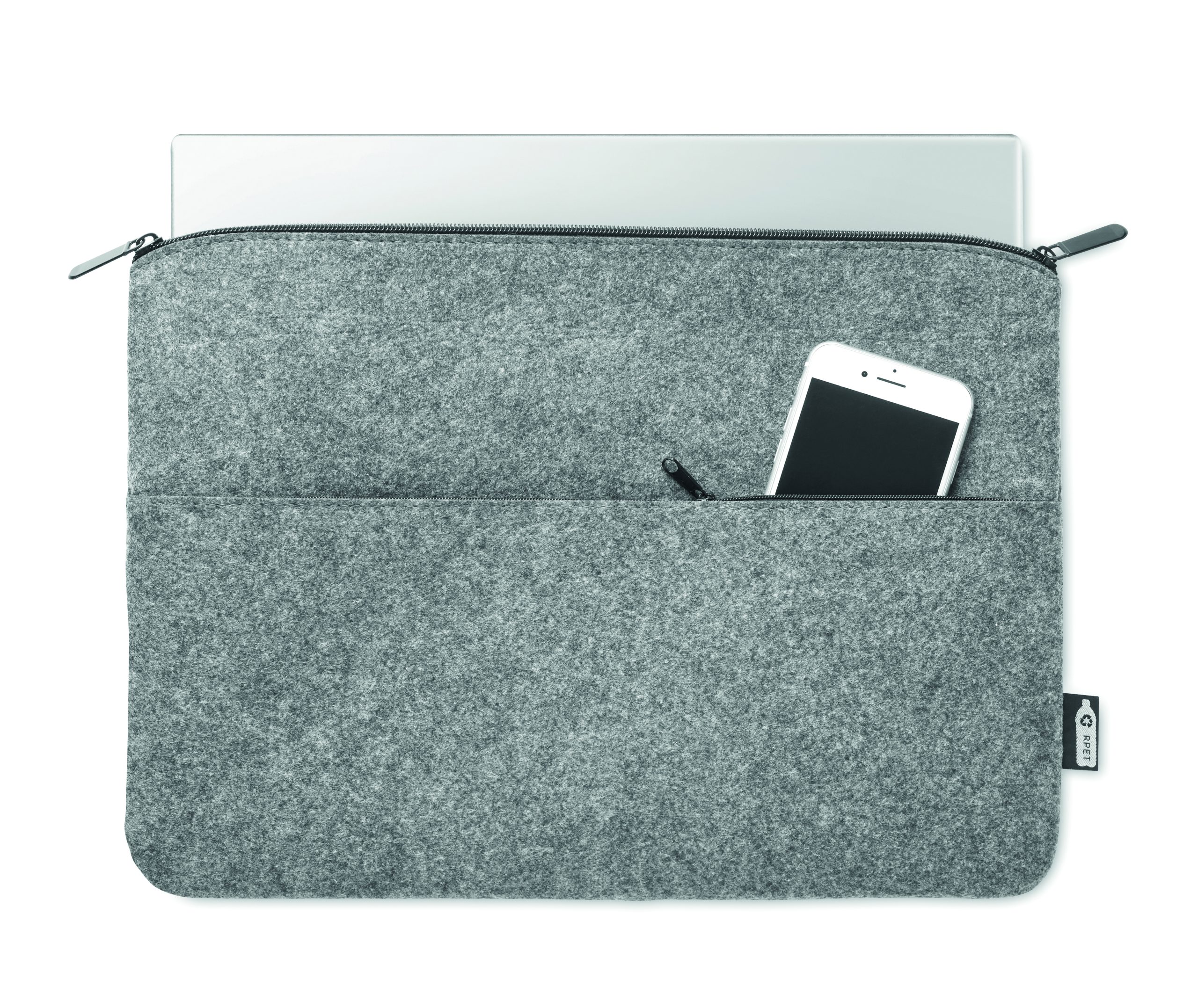 RPET felt 14 inch zippered laptop bag with zippered front pocket.