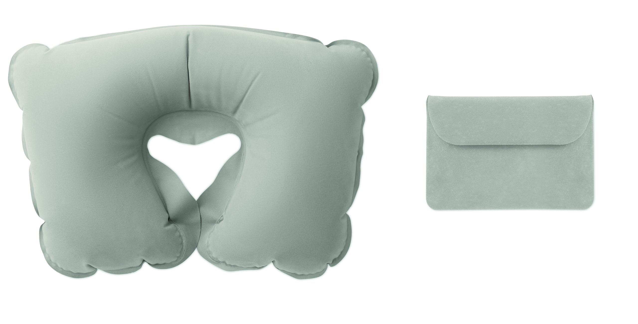 Inflatable travel pillow in velvet pouch. Popular for use in car, train or plane.