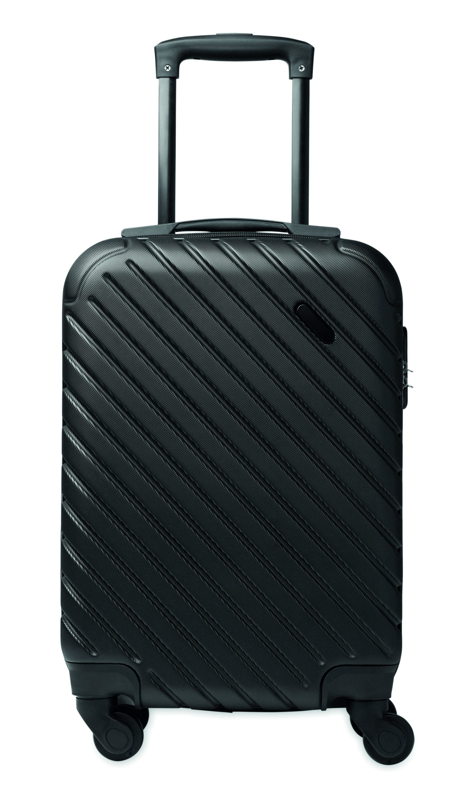 18 inch hard-shell trolley in ABS. 1 main compartment and inner compartment. Includes a security lock. Rides on 4 wheels.
