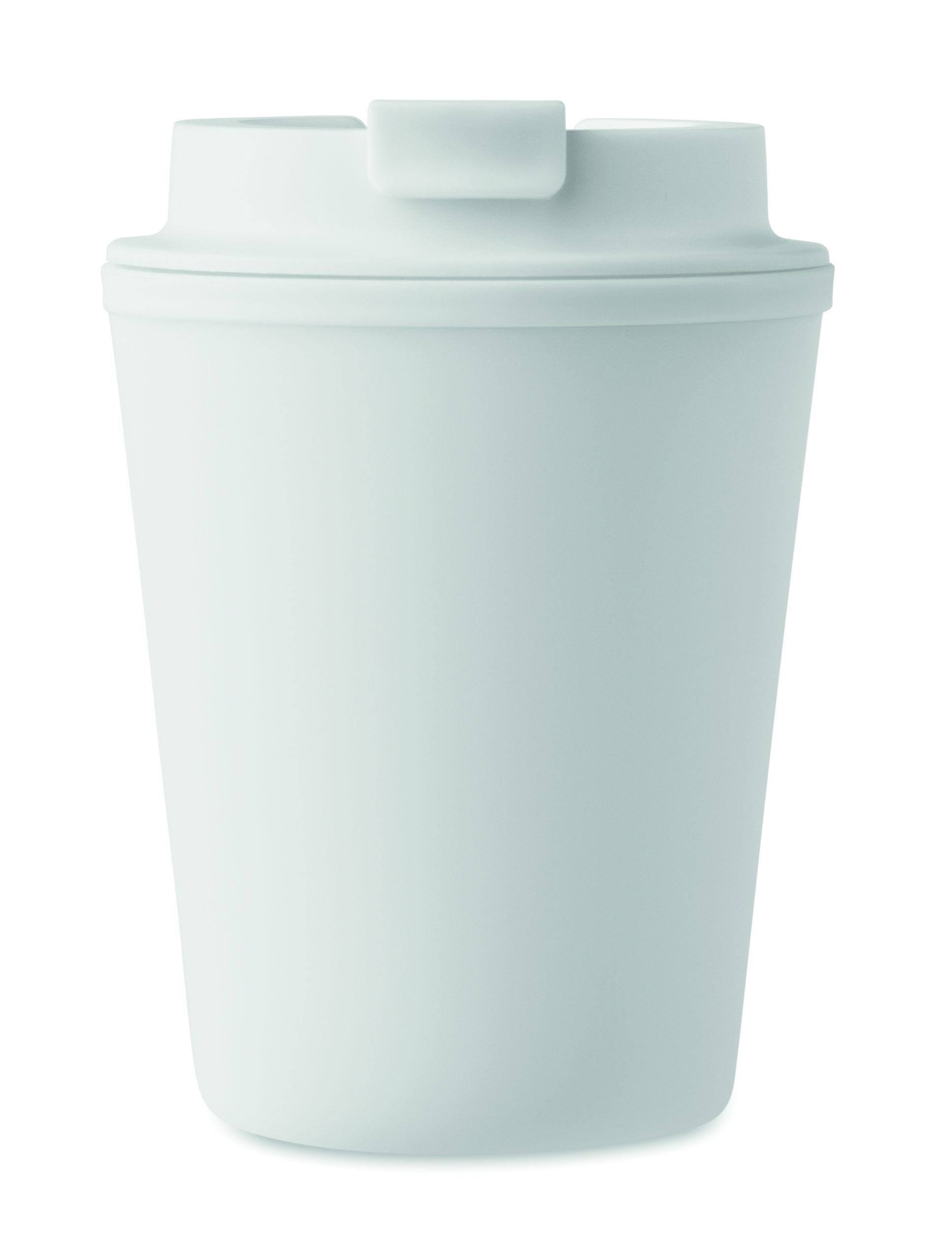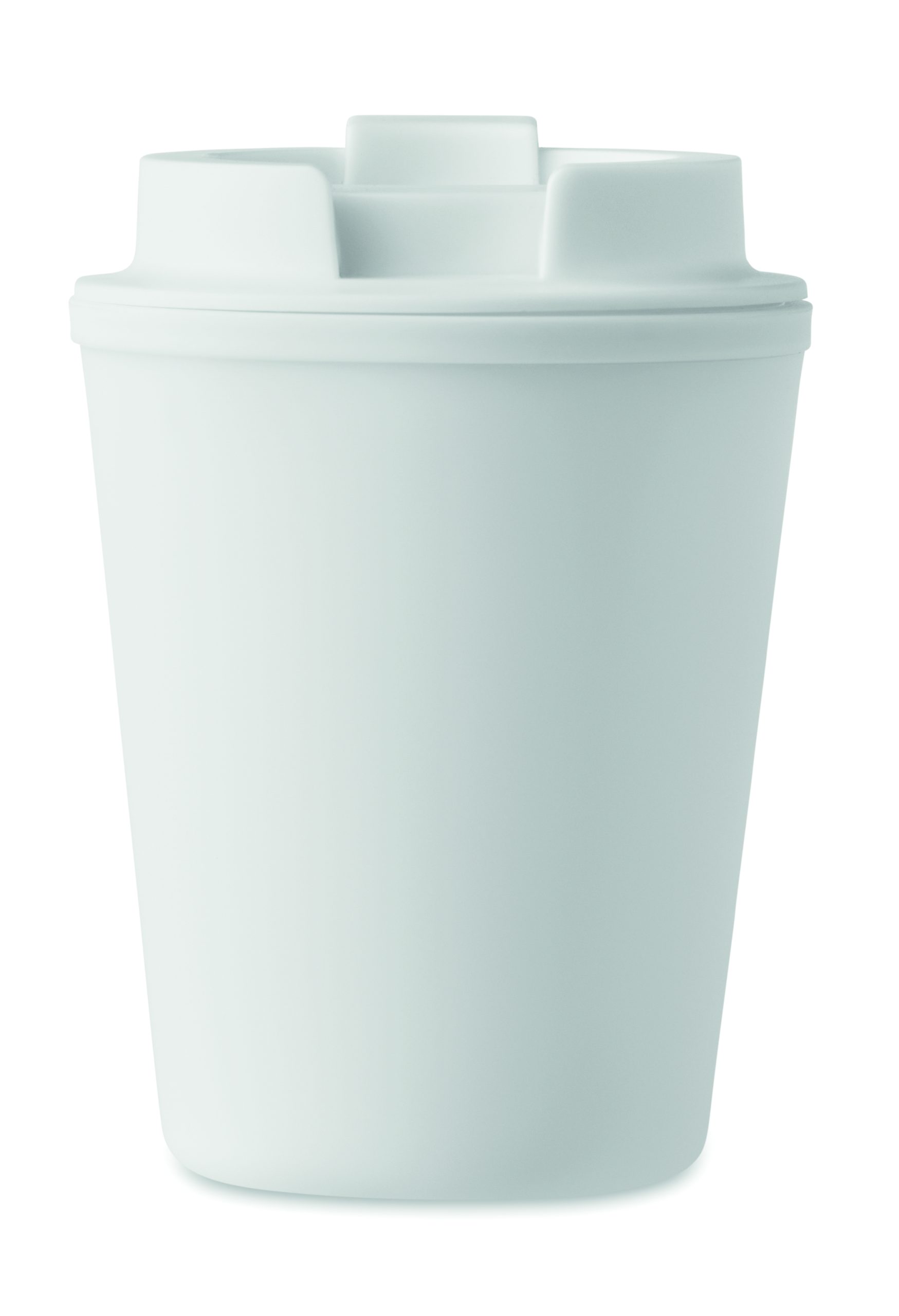 Double wall tumbler in PP. Capacity: 300 ml. Leak-free.