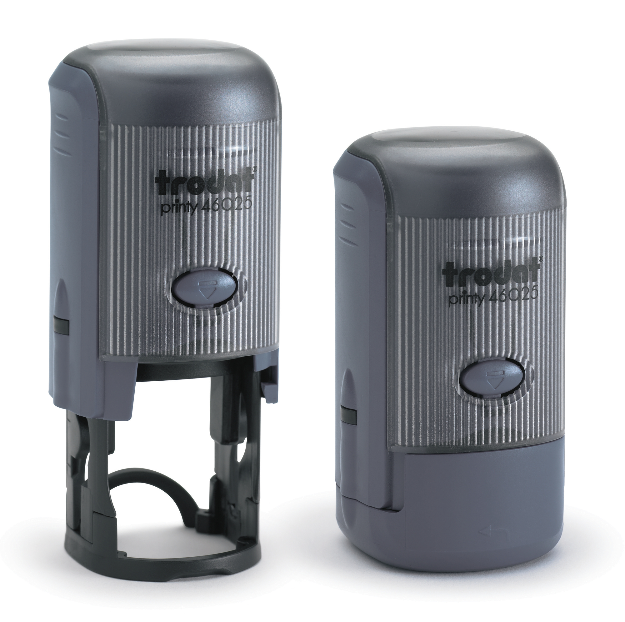 Samoobarvalna avtomatska štampiljka Trodat Printy — kompaktna, zanesljiva in enostavna za uporabo. Vsebuje zamenjljivo barvno blazinico za tisoče odtisov brez ponovnega barvanja.