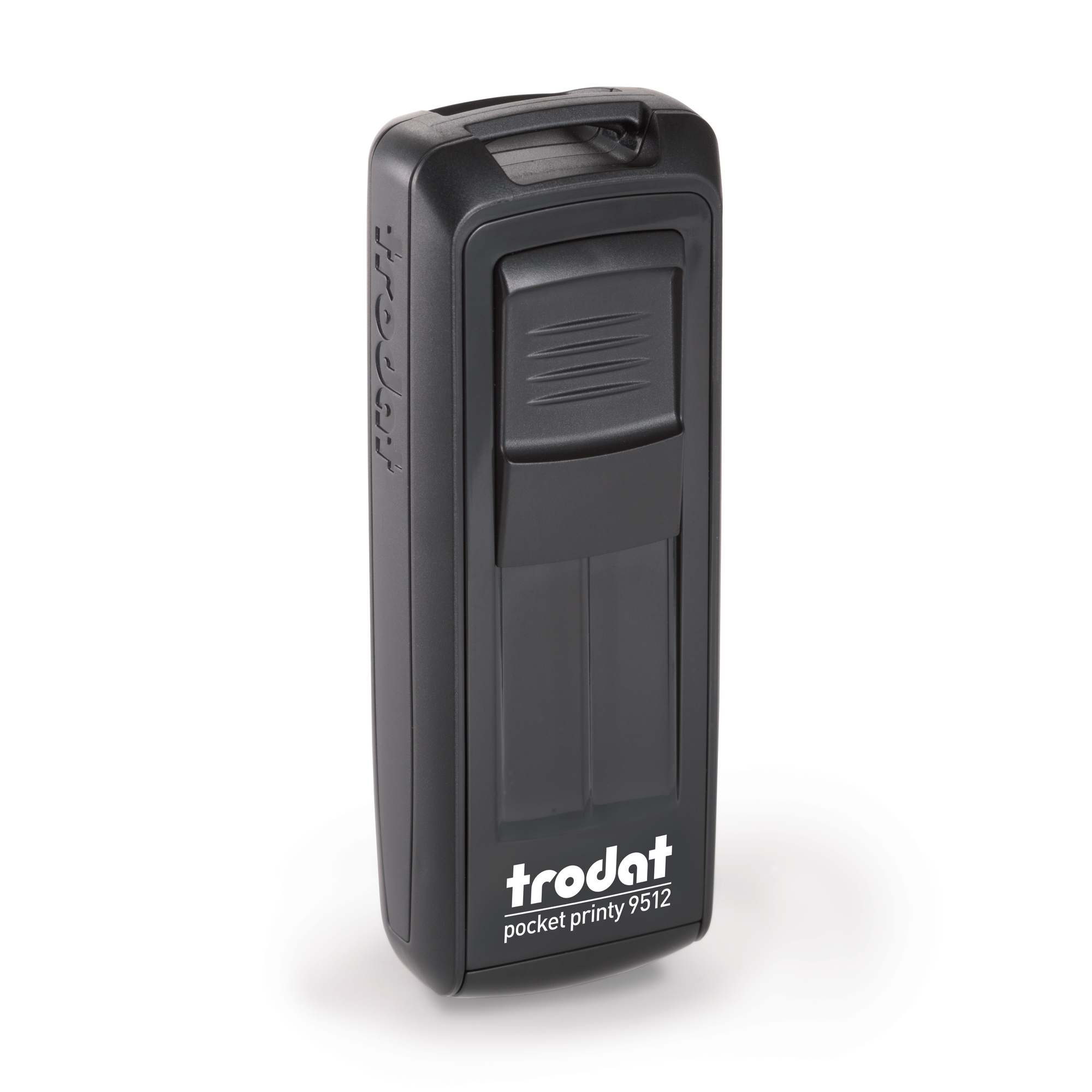 Trodat Mobile Printy žepna štampiljka — idealna za teren. Vgrajena barvna blazinica, kompakten dizajn, ki ga enostavno nosite s seboj.