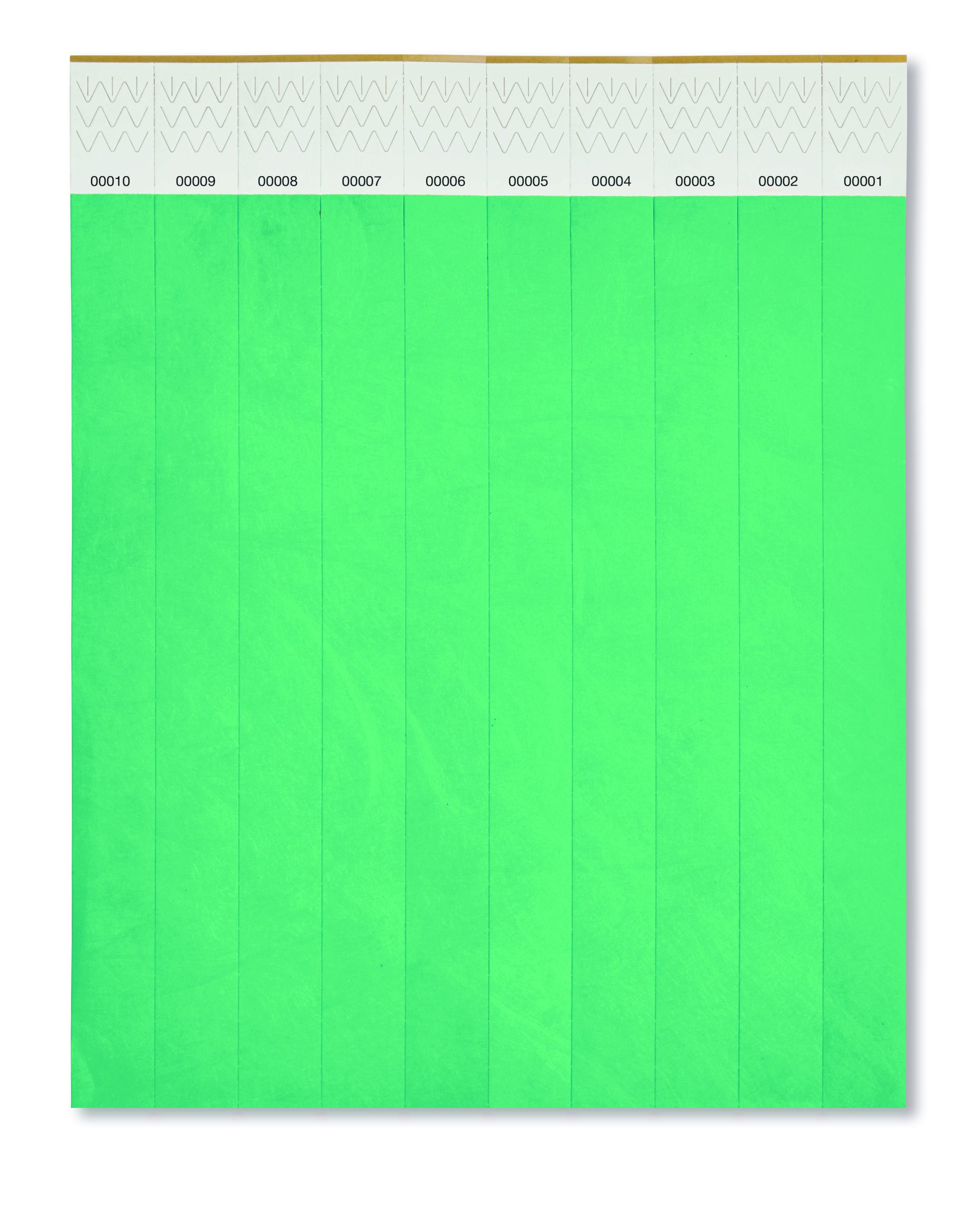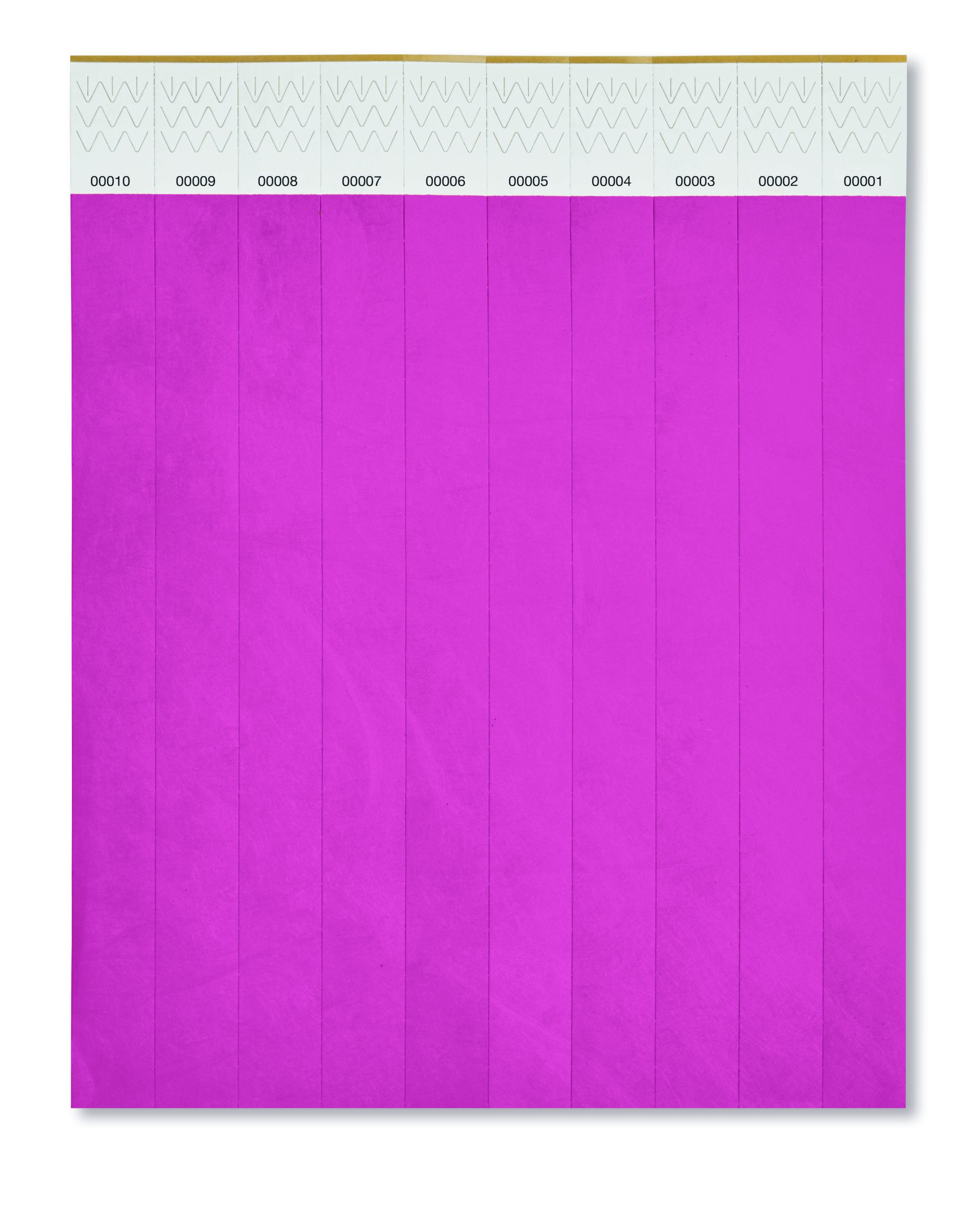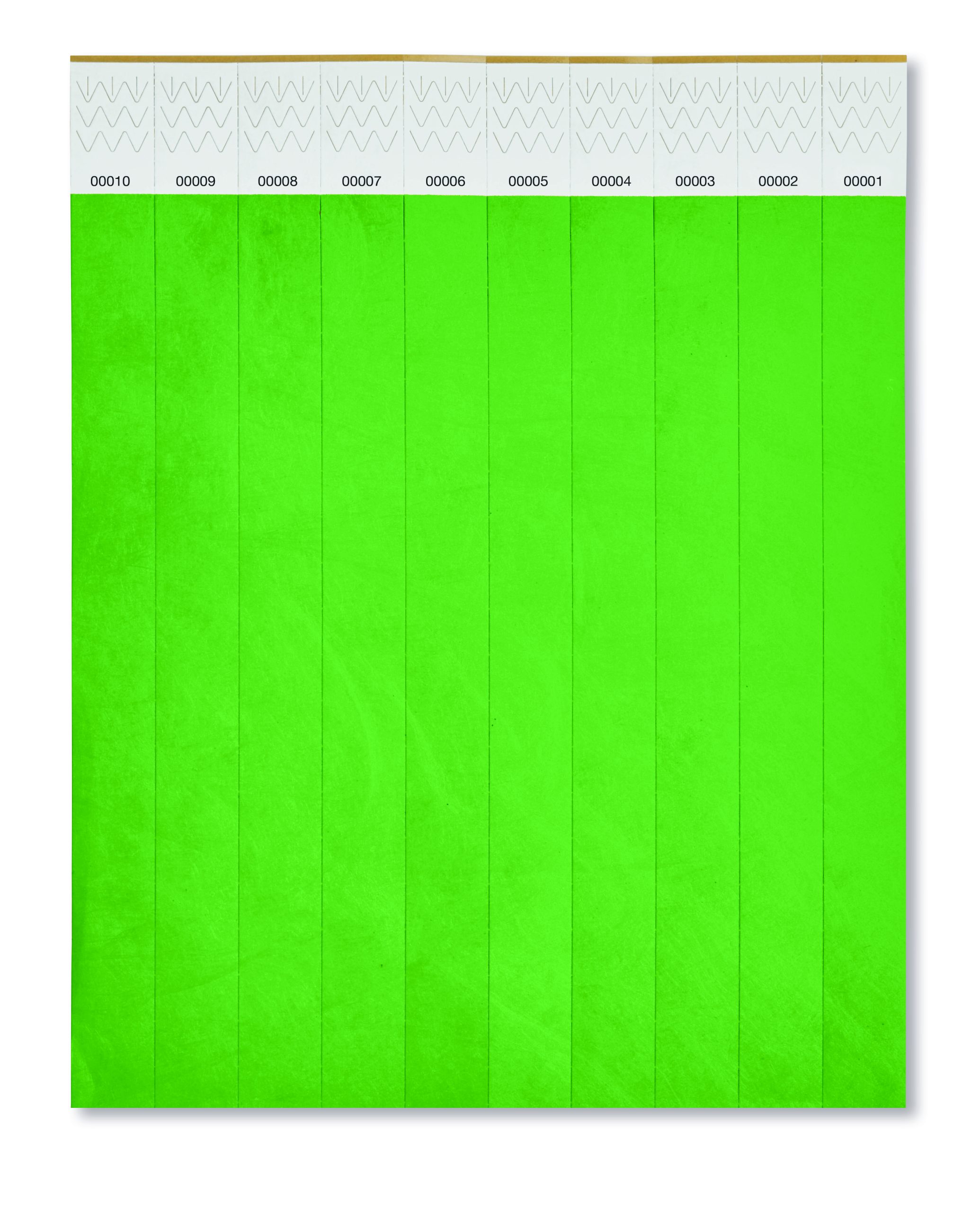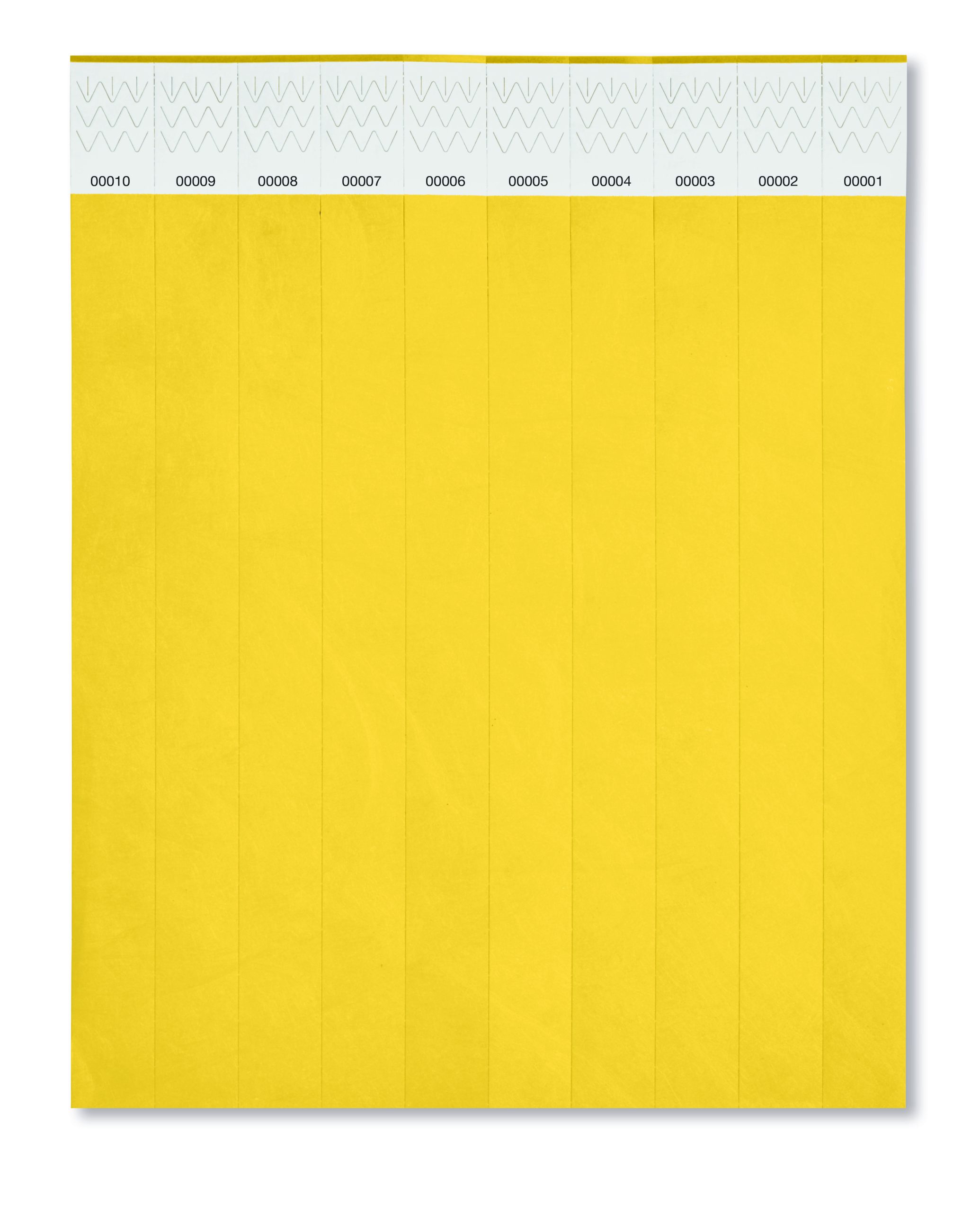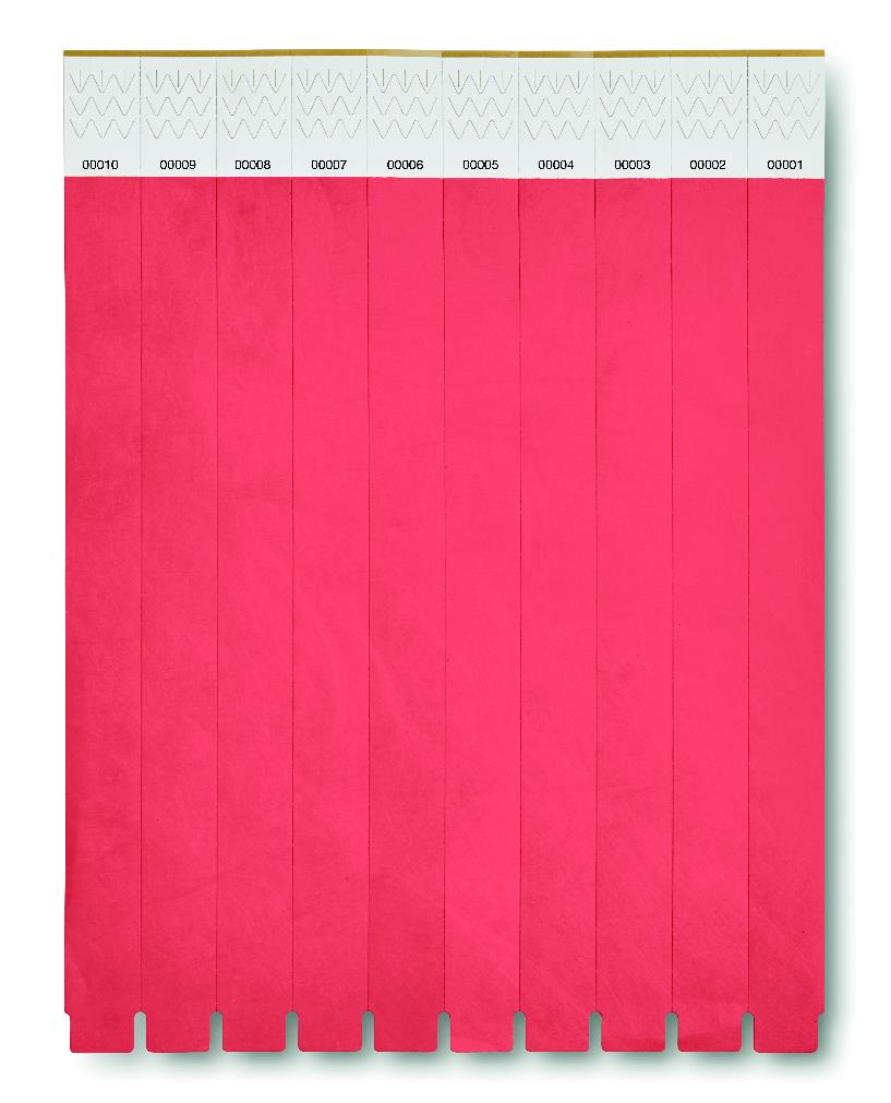 One sheet of 10 event wristbands. DuPont ™ Tyvek® 19mm wide. Including unique numbering on each wristband. Made in EU.