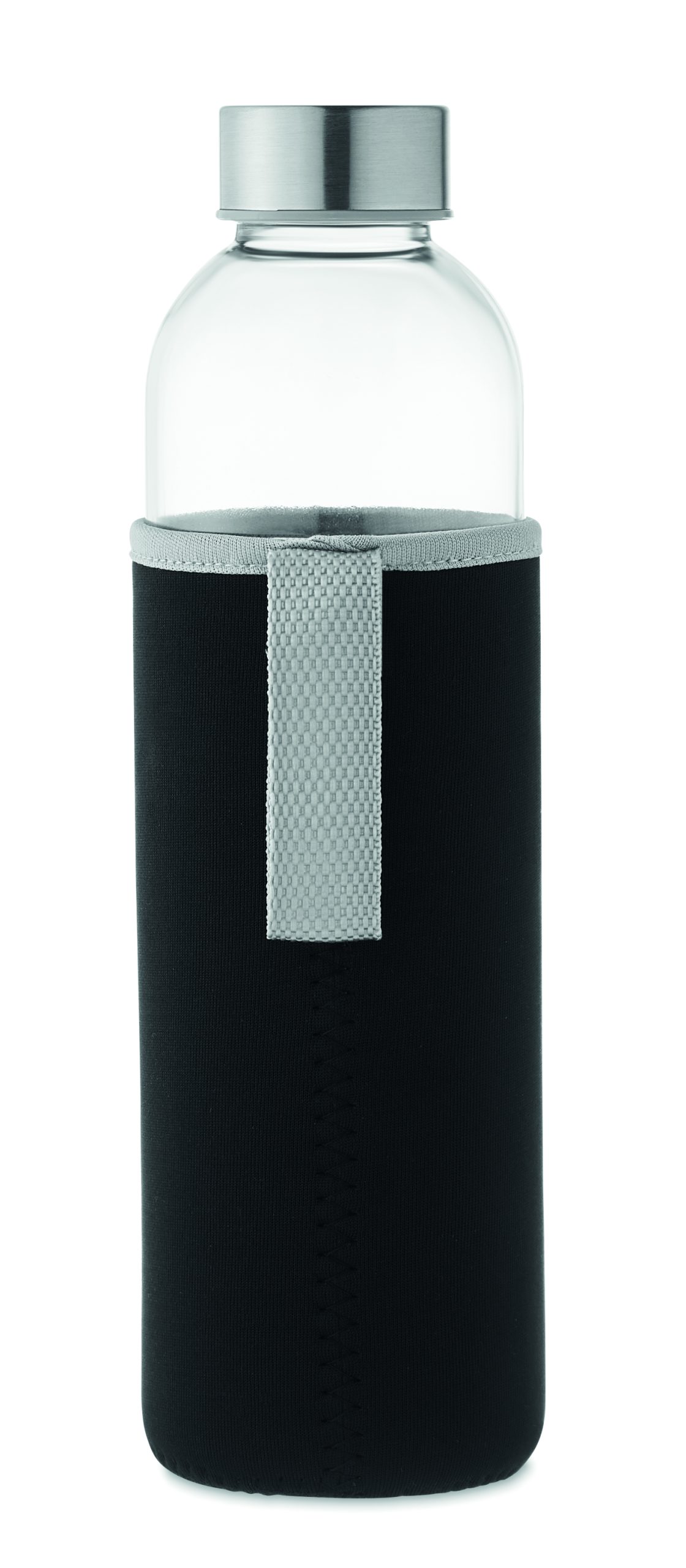 Glass bottle with neoprene pouch in 750 ml. Not suitable for carbonated drinks. Leak free.