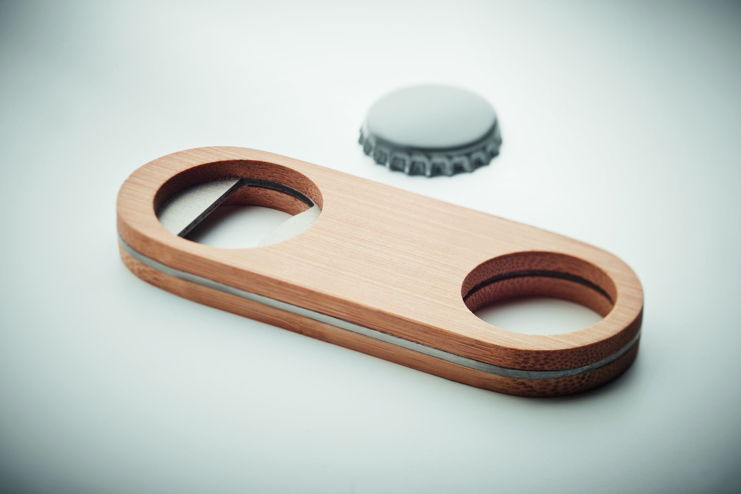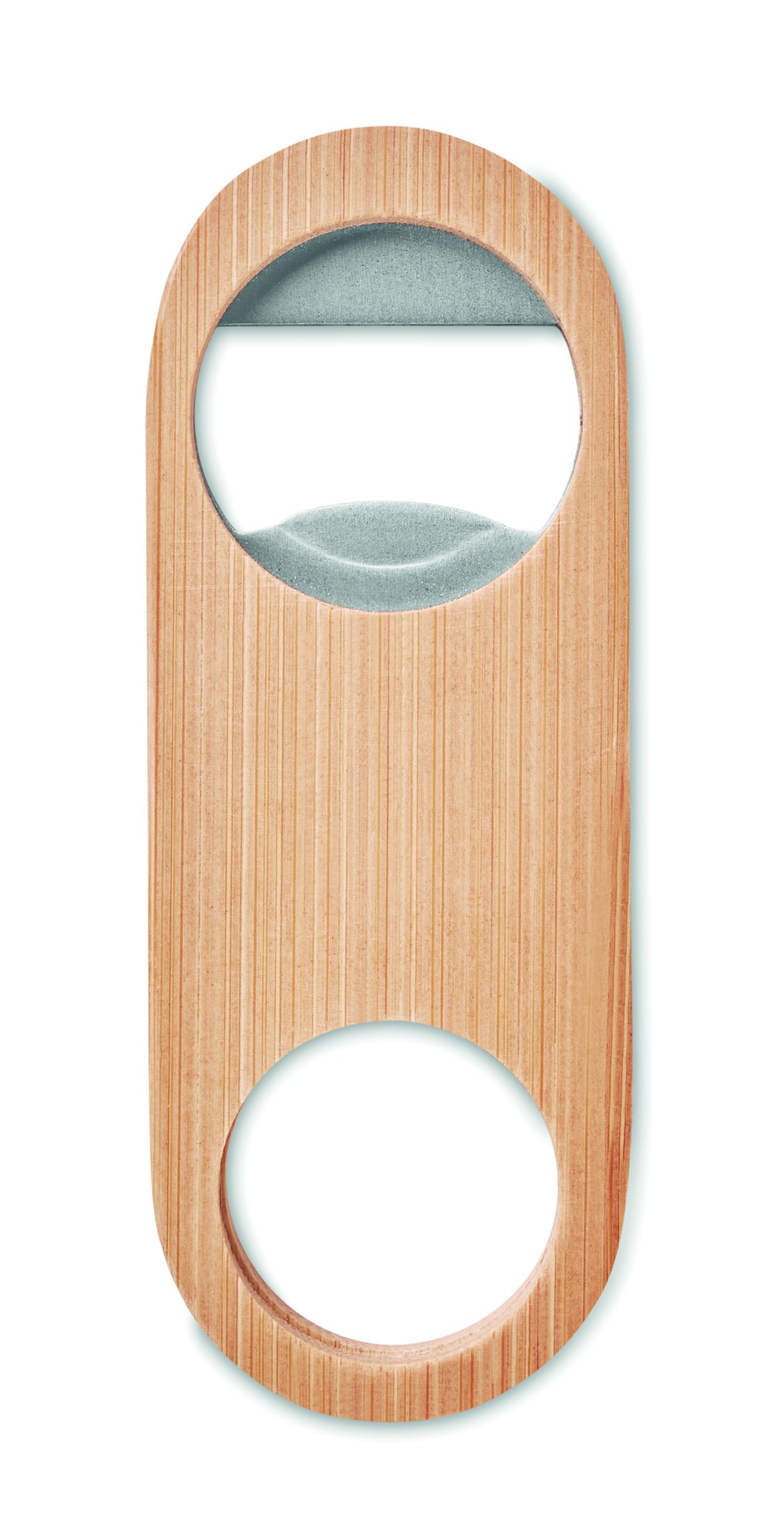 Stainless steel speed bottle opener with bamboo surface. Bamboo is a natural product, there may be slight variations in colour and size per item, which can affect the final decoration outcome. FSC®-certified | FSC 100%, N5.7, FSC-C213206
