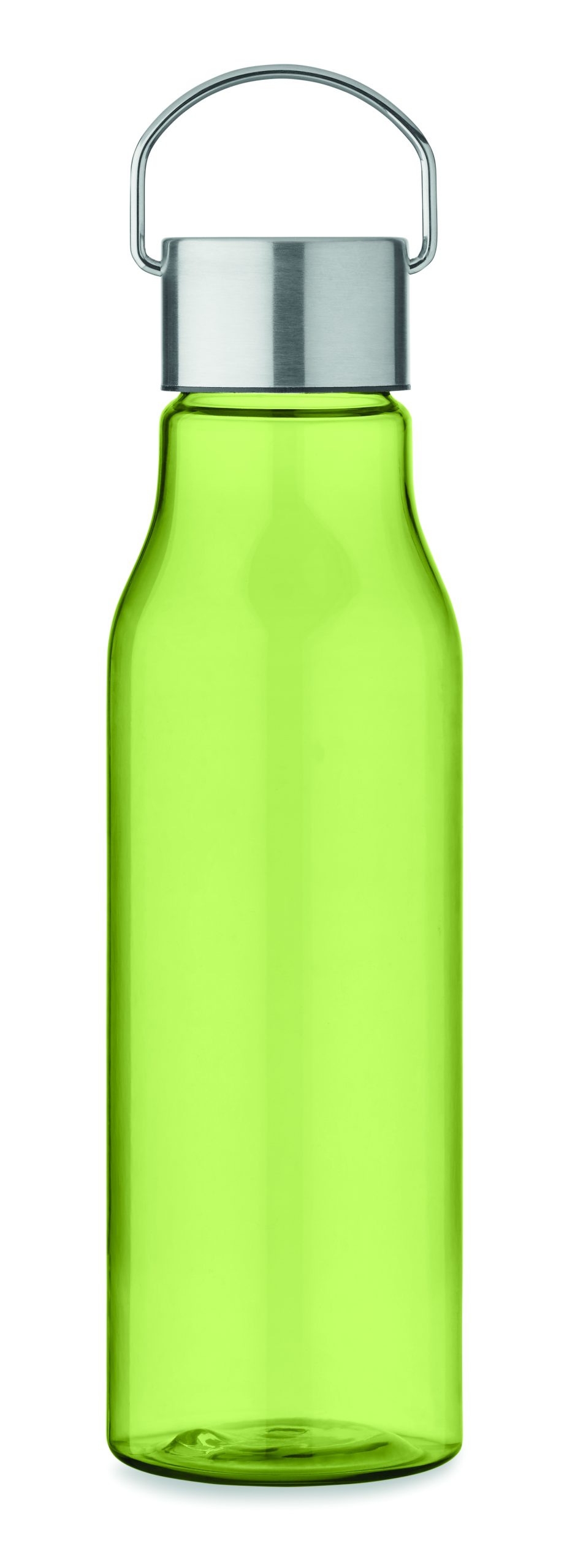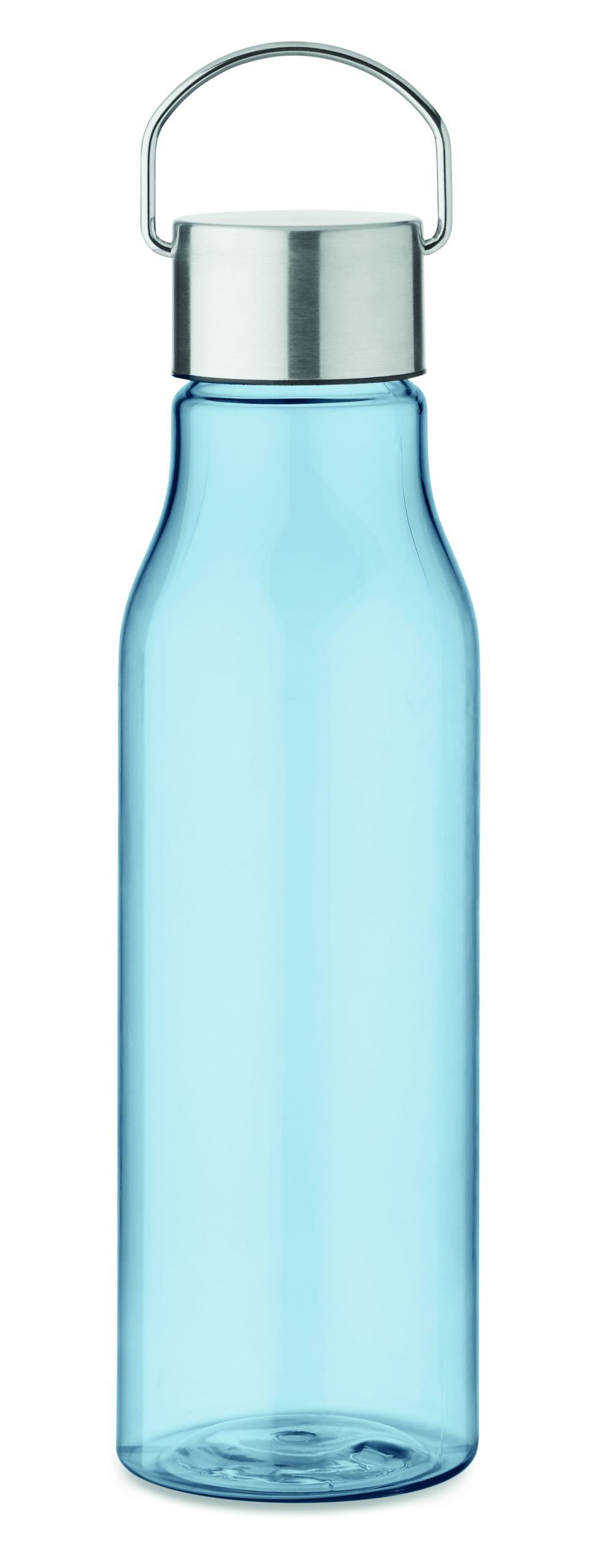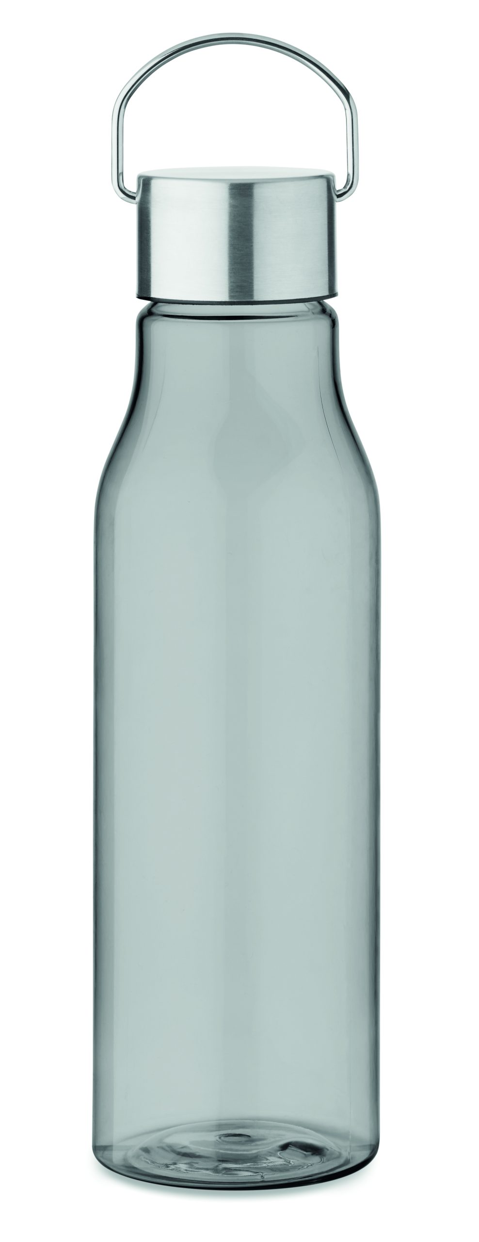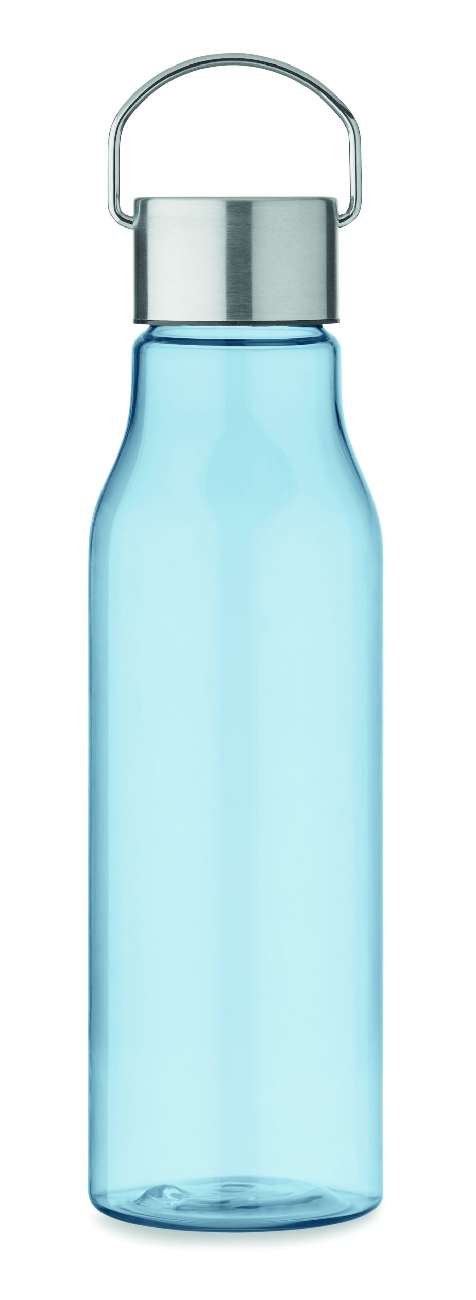 Drinking bottle in RPET which is BPA free and stainless steel cap with lid handle. Leak free. Capacity: 600 ml.