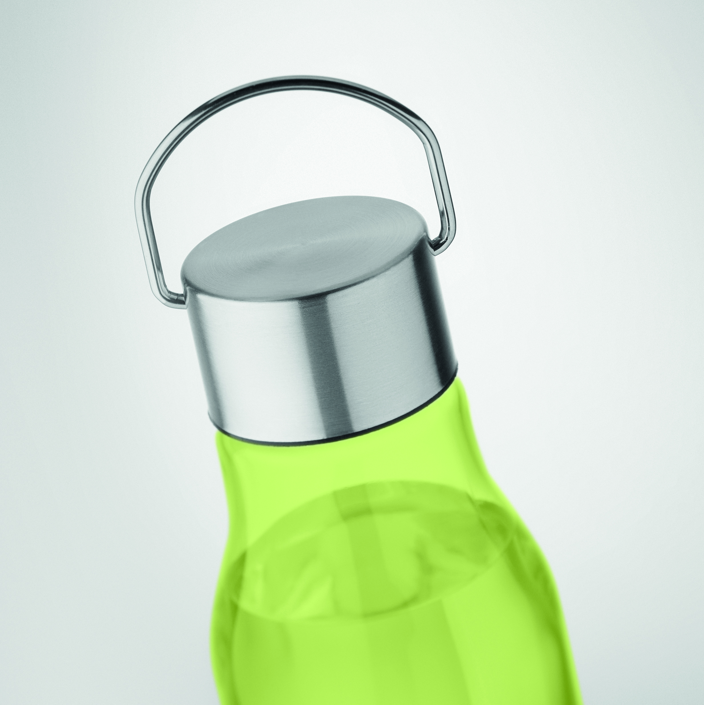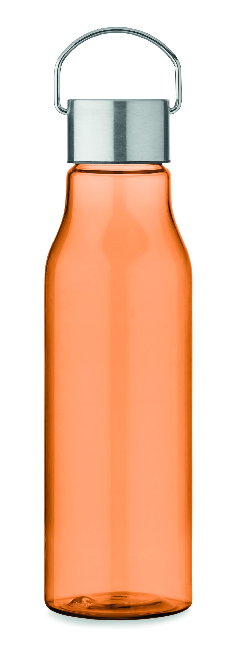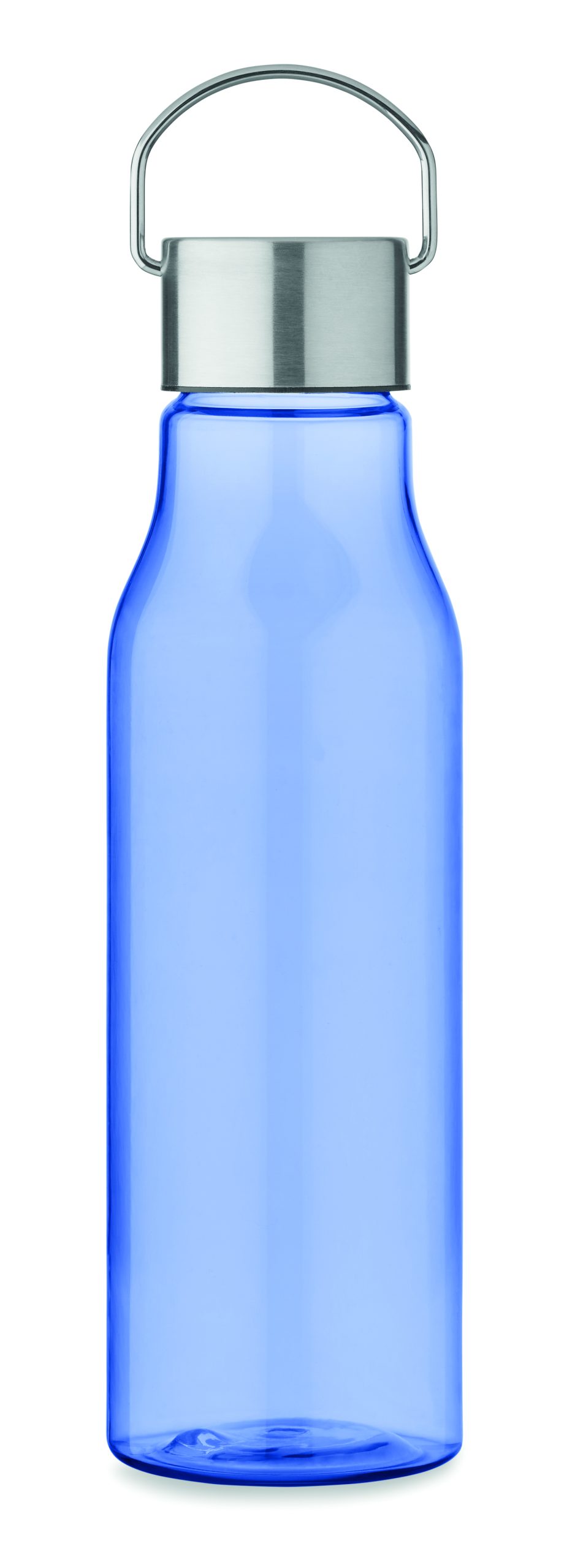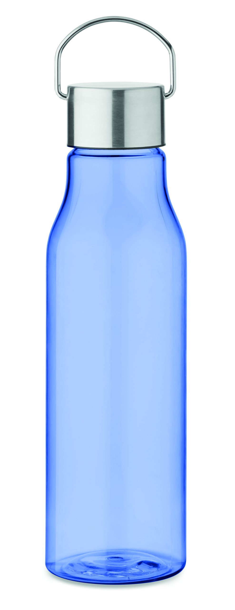 Drinking bottle in RPET which is BPA free and stainless steel cap with lid handle. Leak free. Capacity: 600 ml.