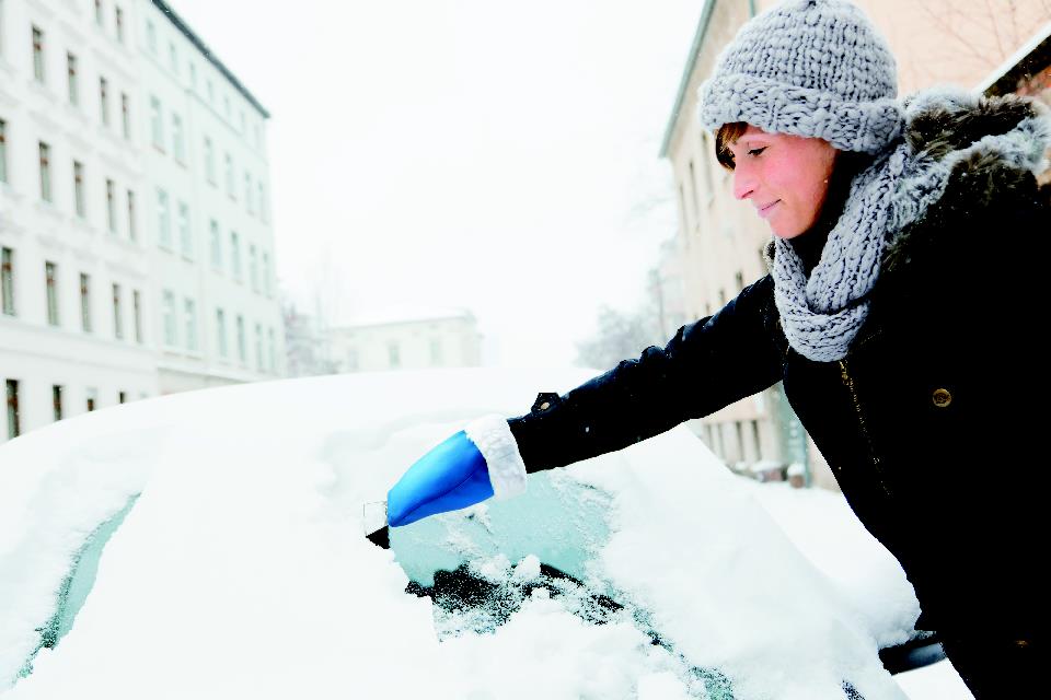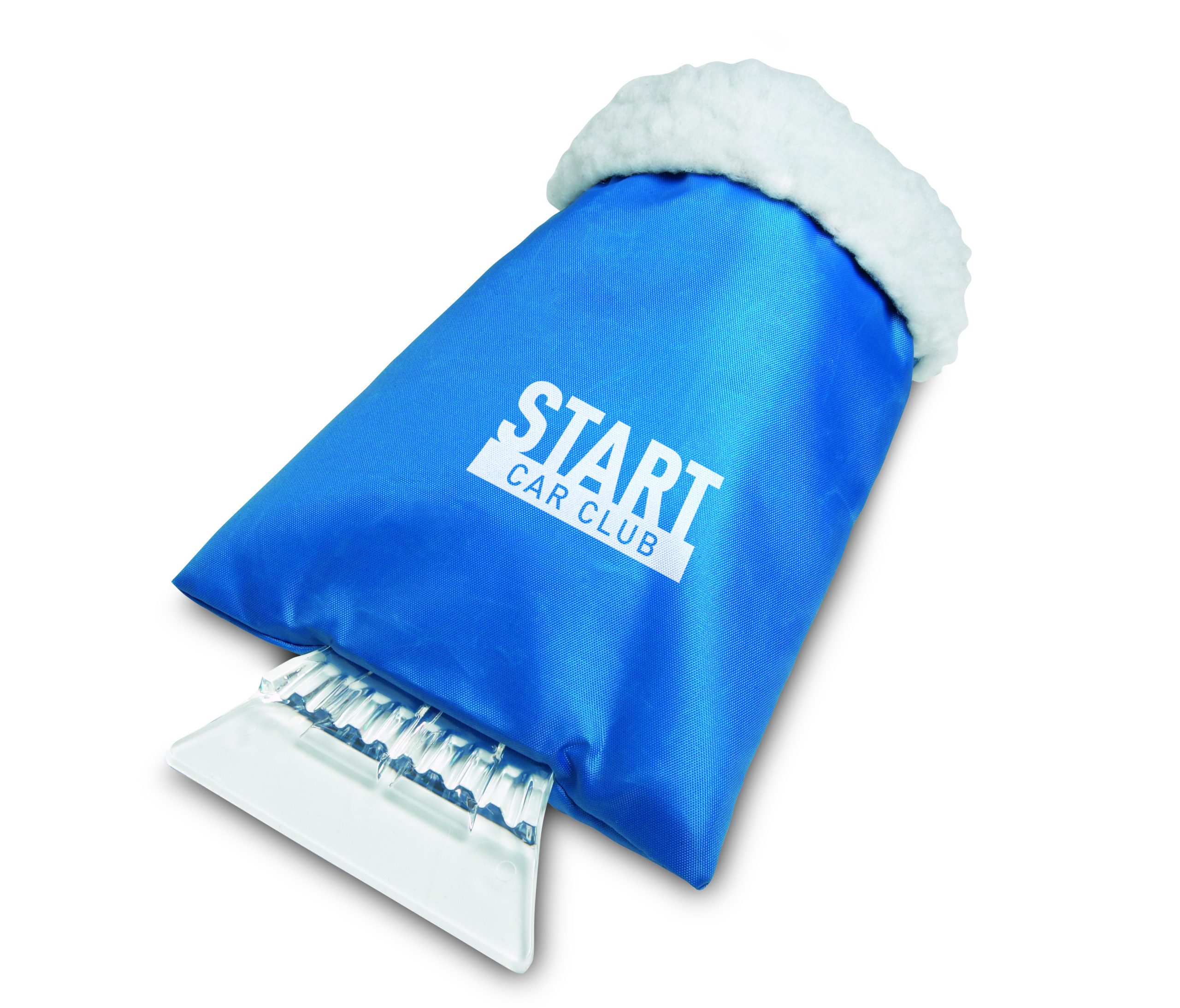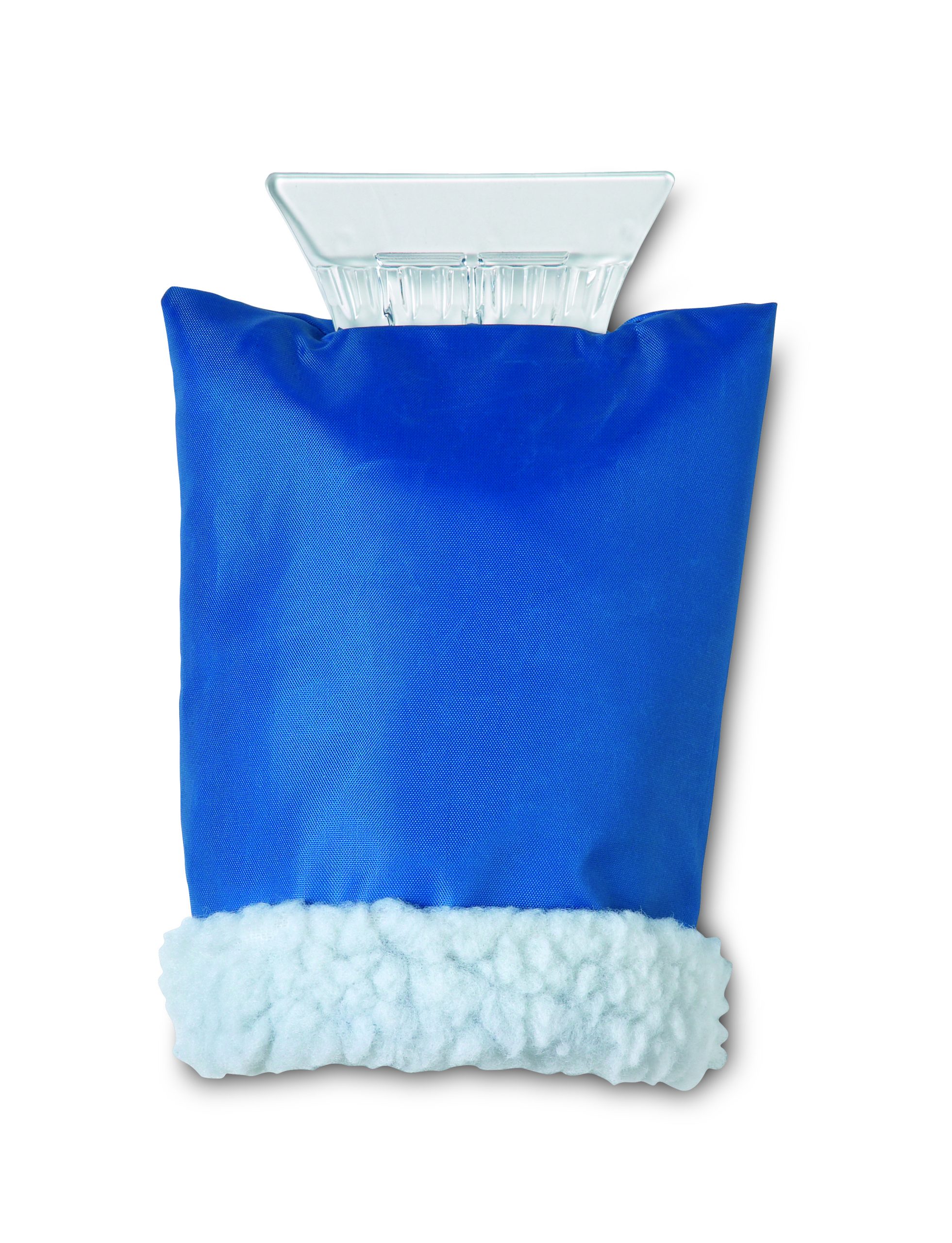 Plastic ice scraper with warm protective glove.