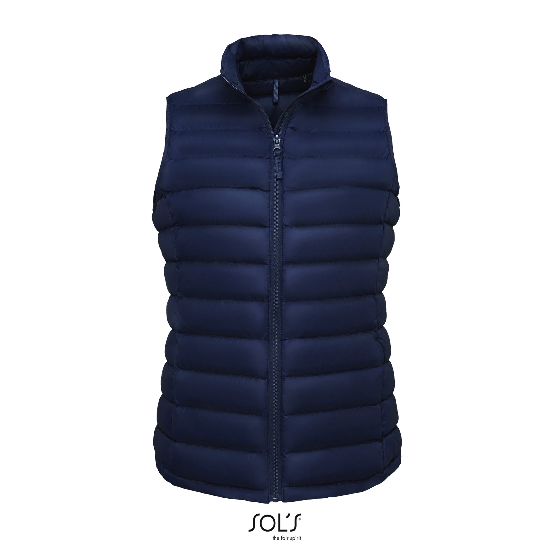 SOL'S WILSON BW WOMEN, WOMEN'S LIGHTWEIGHT DOWN BODYWARMER, Outer fabric and lining: 100% polyamide. Padding (please note that we are in the process of transitioning from stock): 90% down and 10% feather until stock lasts. Then transition to 60% Sorona 40% recycled polyester. POLYAMIDE 380T, Zip opening, 2 front zip pockets, 2 inside pockets, Small high collar, Close-fitting cut, In bag folding system with stoppers. About sizes matching, please refer to the size chart in the product documentation section.