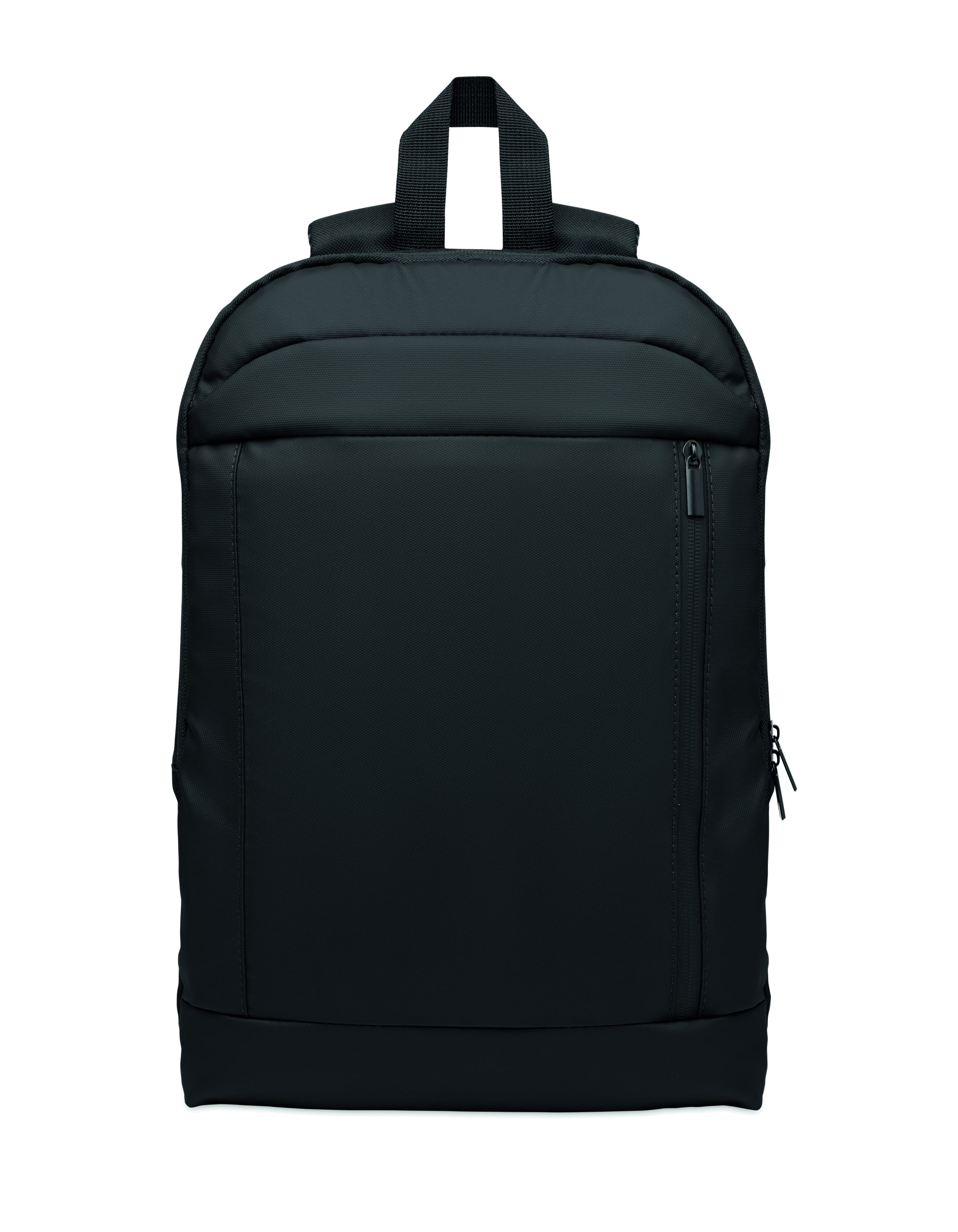 Expandable 600D RPET polyester computer backpack 16” with PU coating on front and RPET polyester lining. Hidden zippered pocket and padded laptop compartment, front compartment, mesh back and luggage strap.